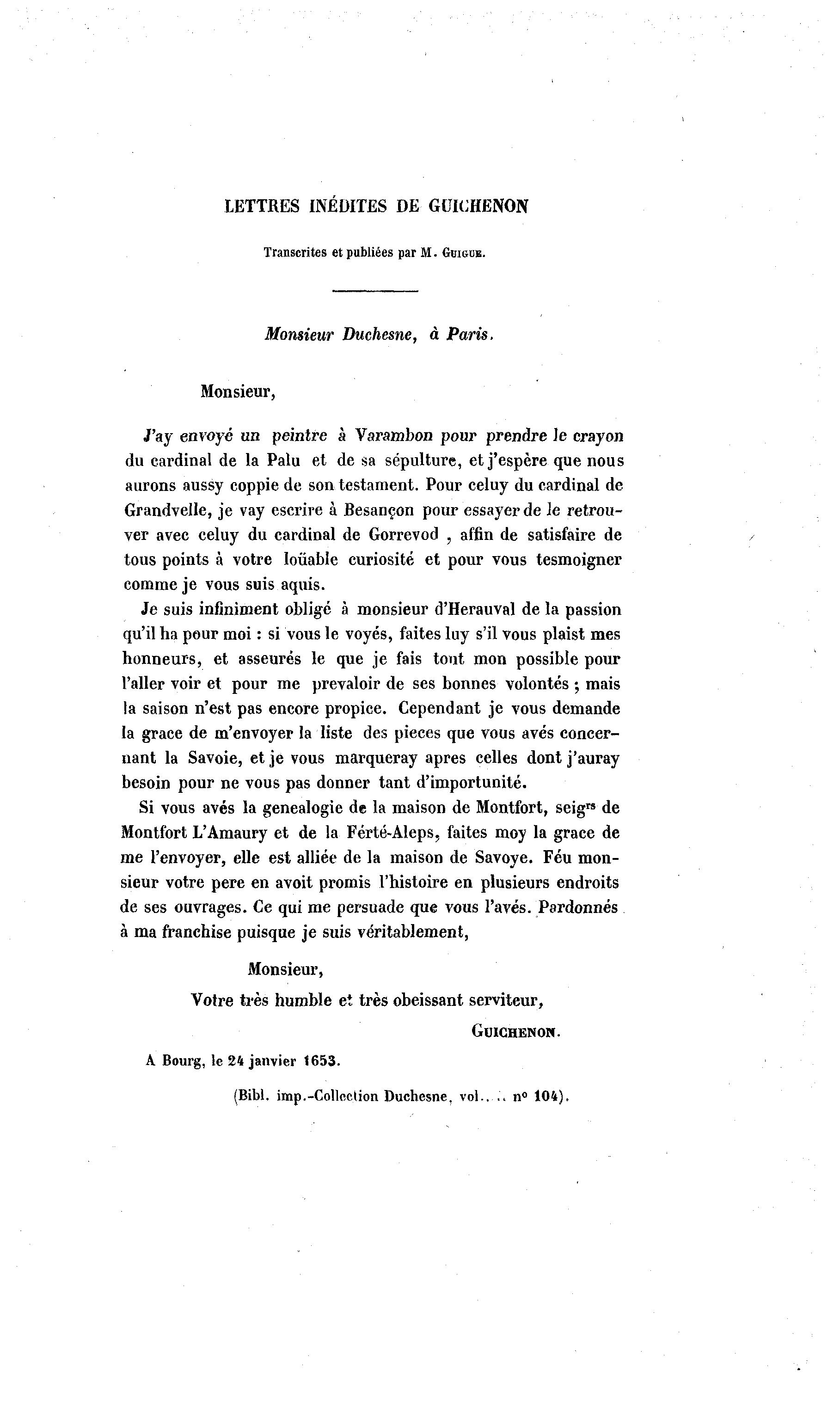 LETTRES INÉDITES DE GUICHENON