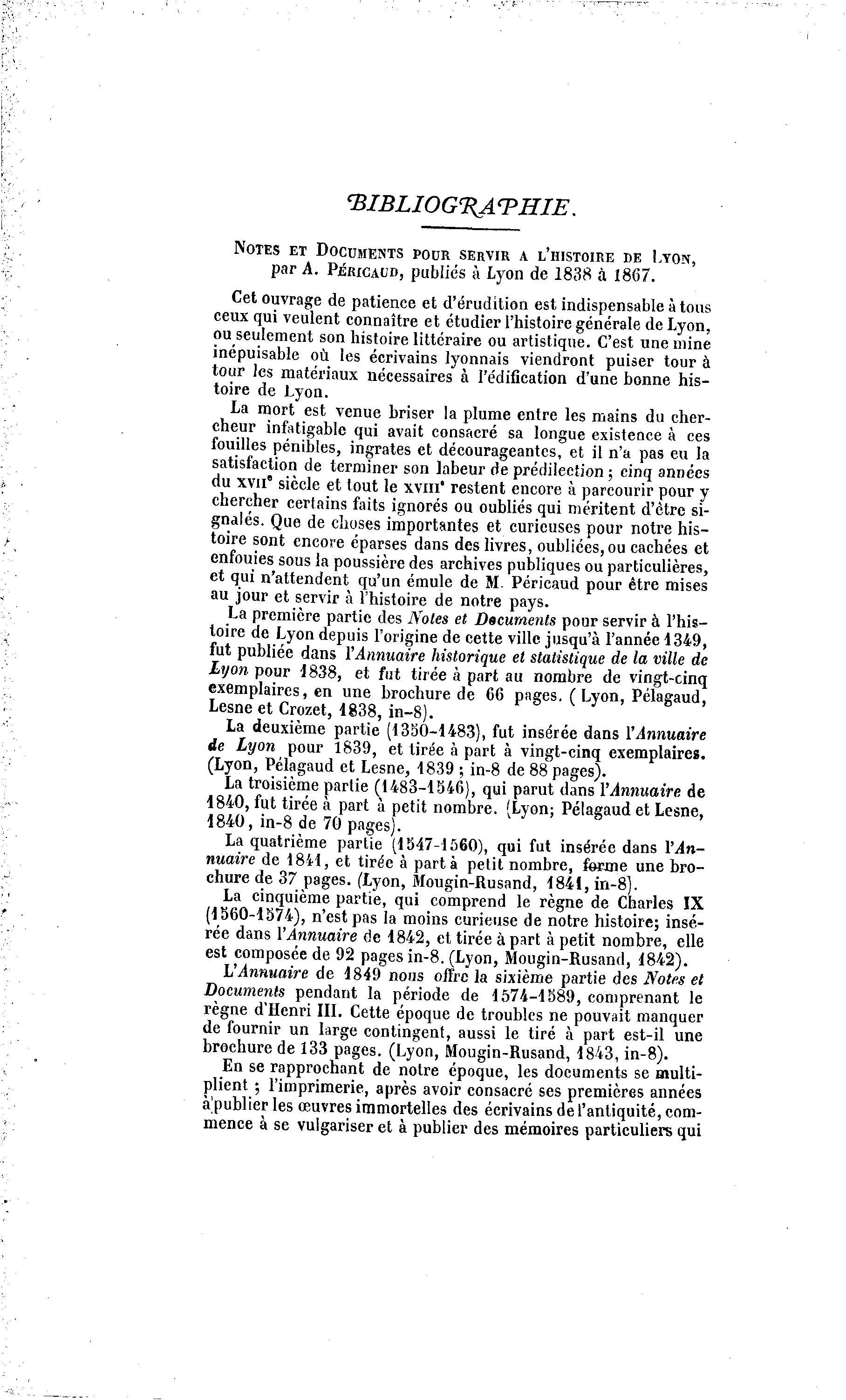 NOTES ET DOCUMENTS POUR SERVIR A L'HISTOIRE DE LYON,