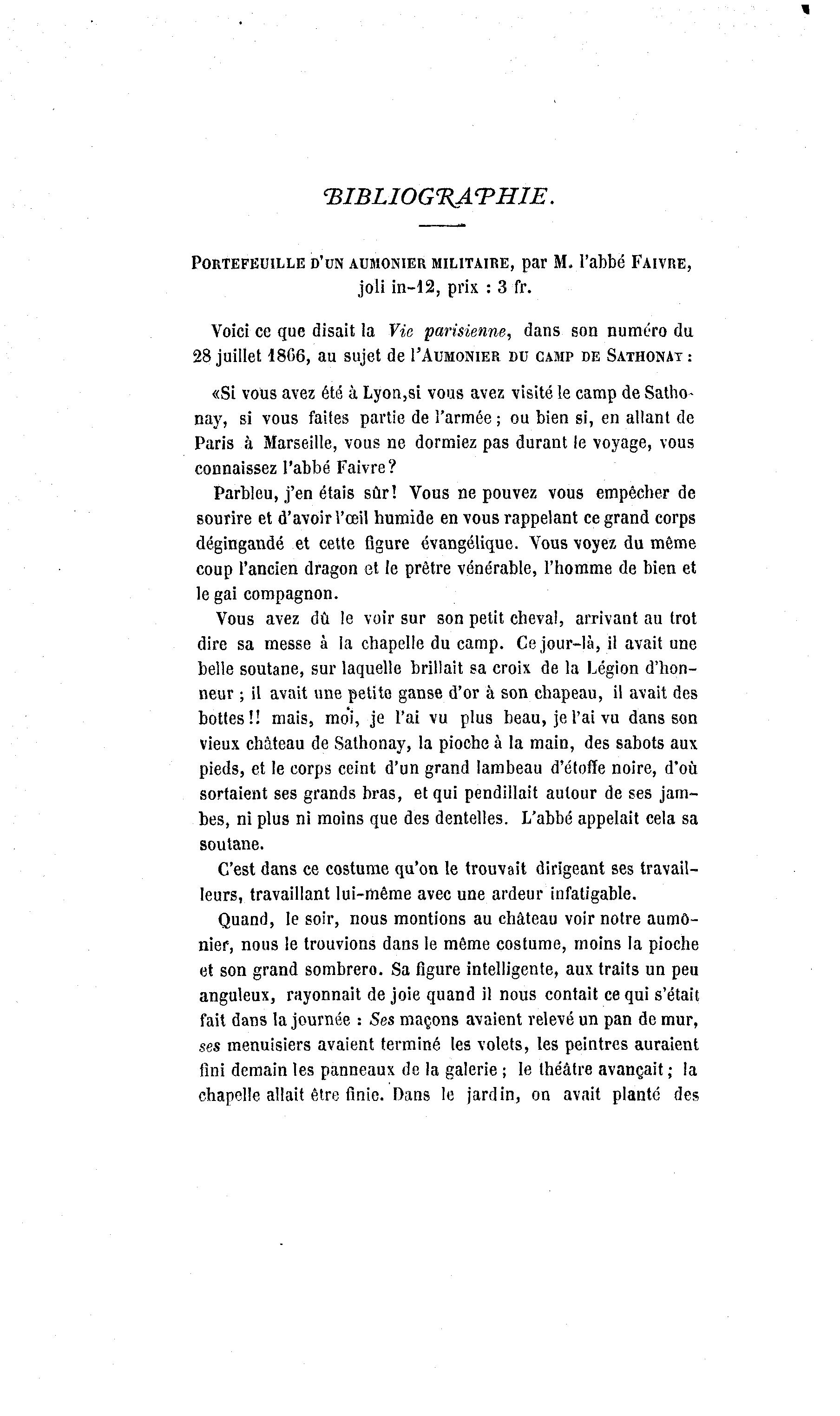 PORTEFEUILLE D'UN AUMÔNIER MILITAIRE, par M. l'abbé FAIVRE,