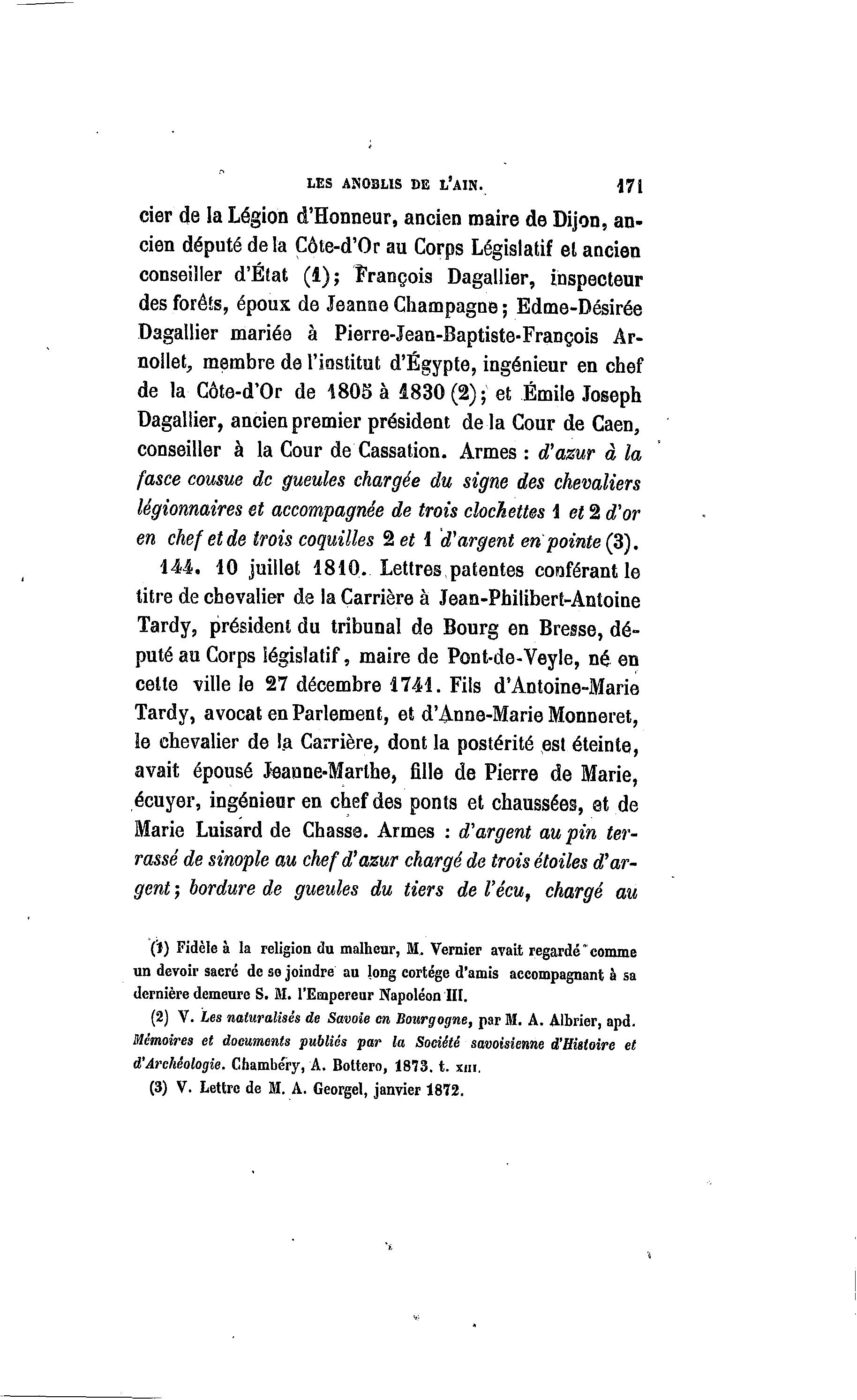 LES ANOBLIS DE L'AIN. 171