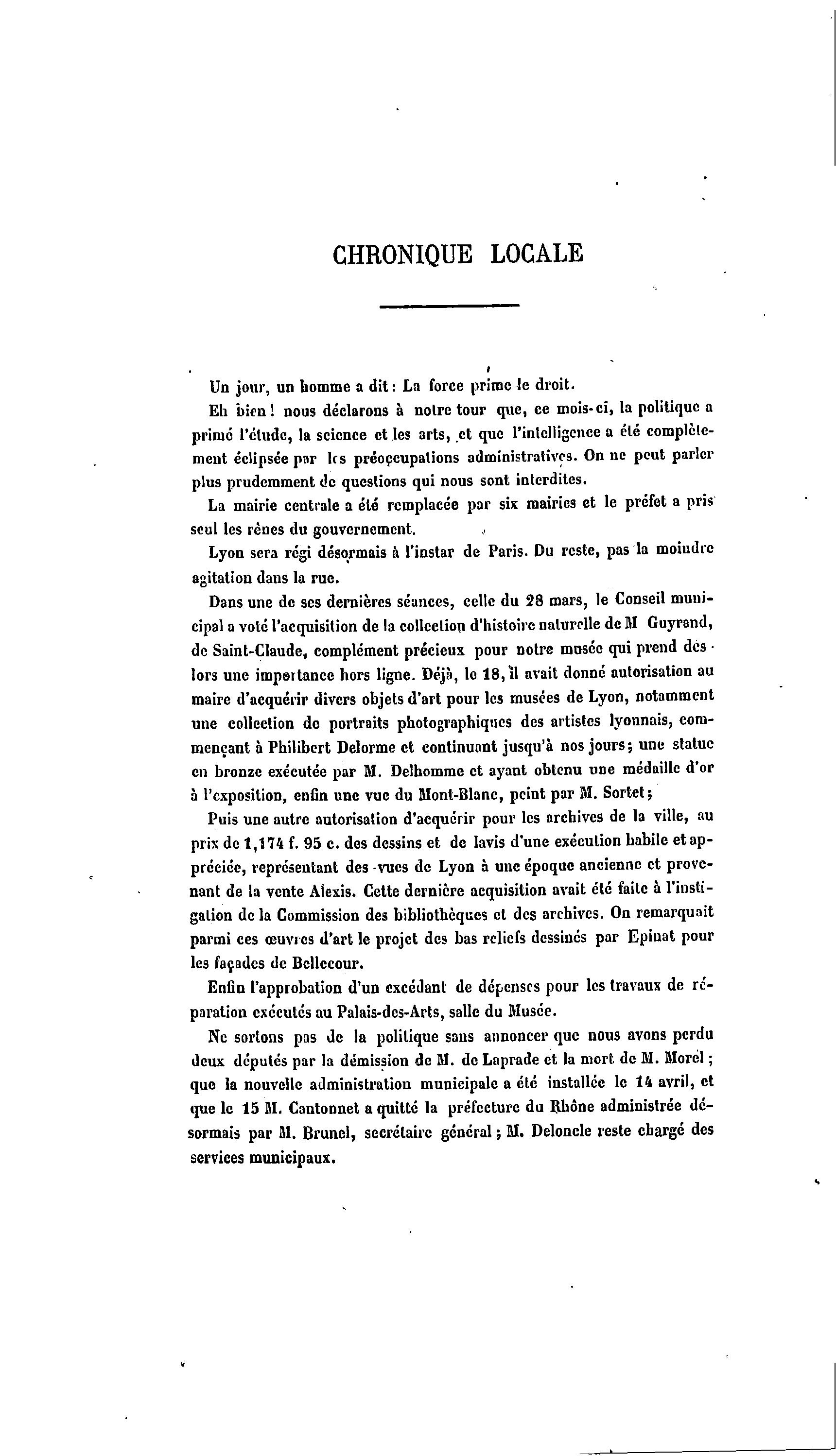 Lyon sera régi désormais à l'instar de Paris. Du reste, pas la moindre