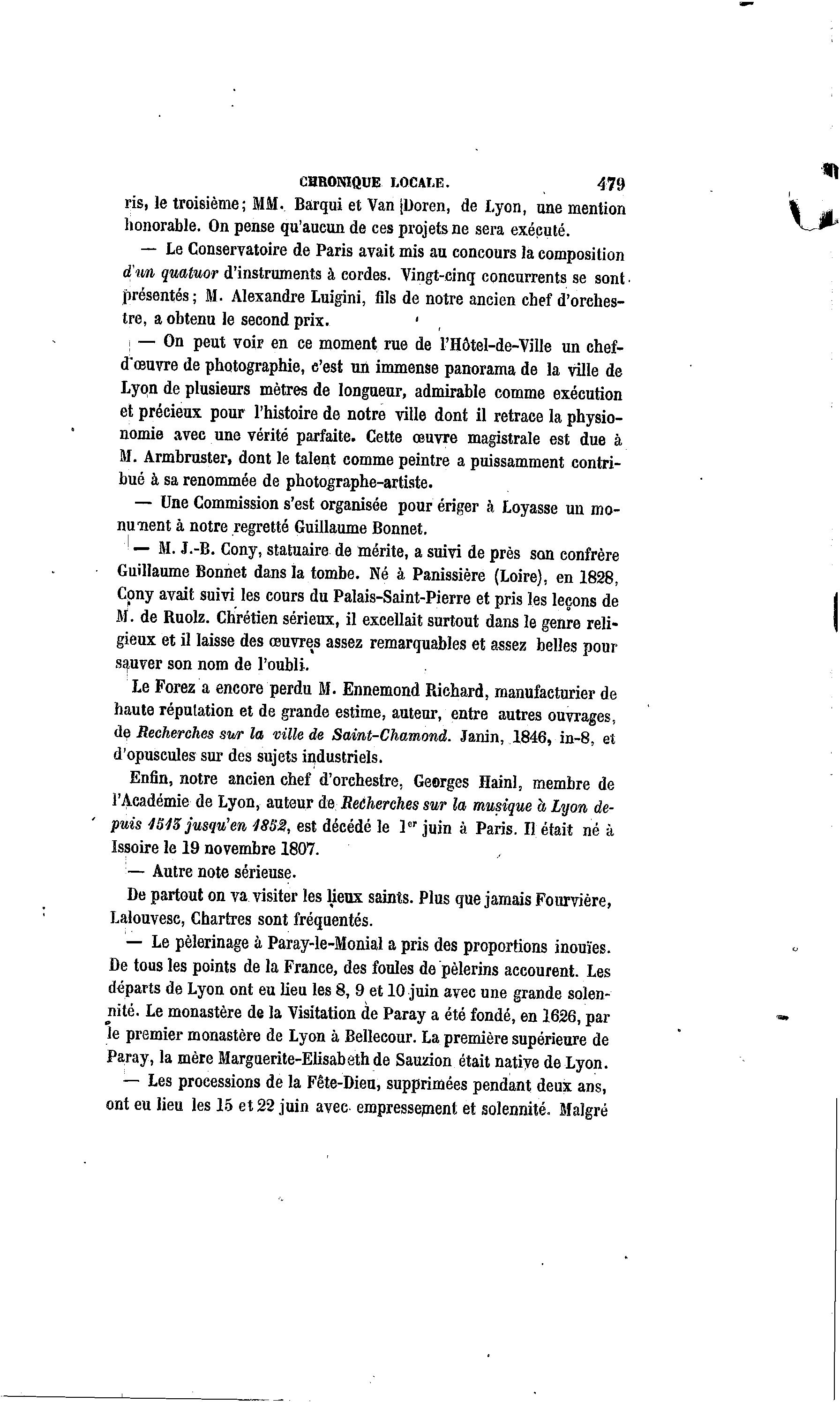 l'Académie de Lyon, auteur de Recherches sur la musique à Lyon de-