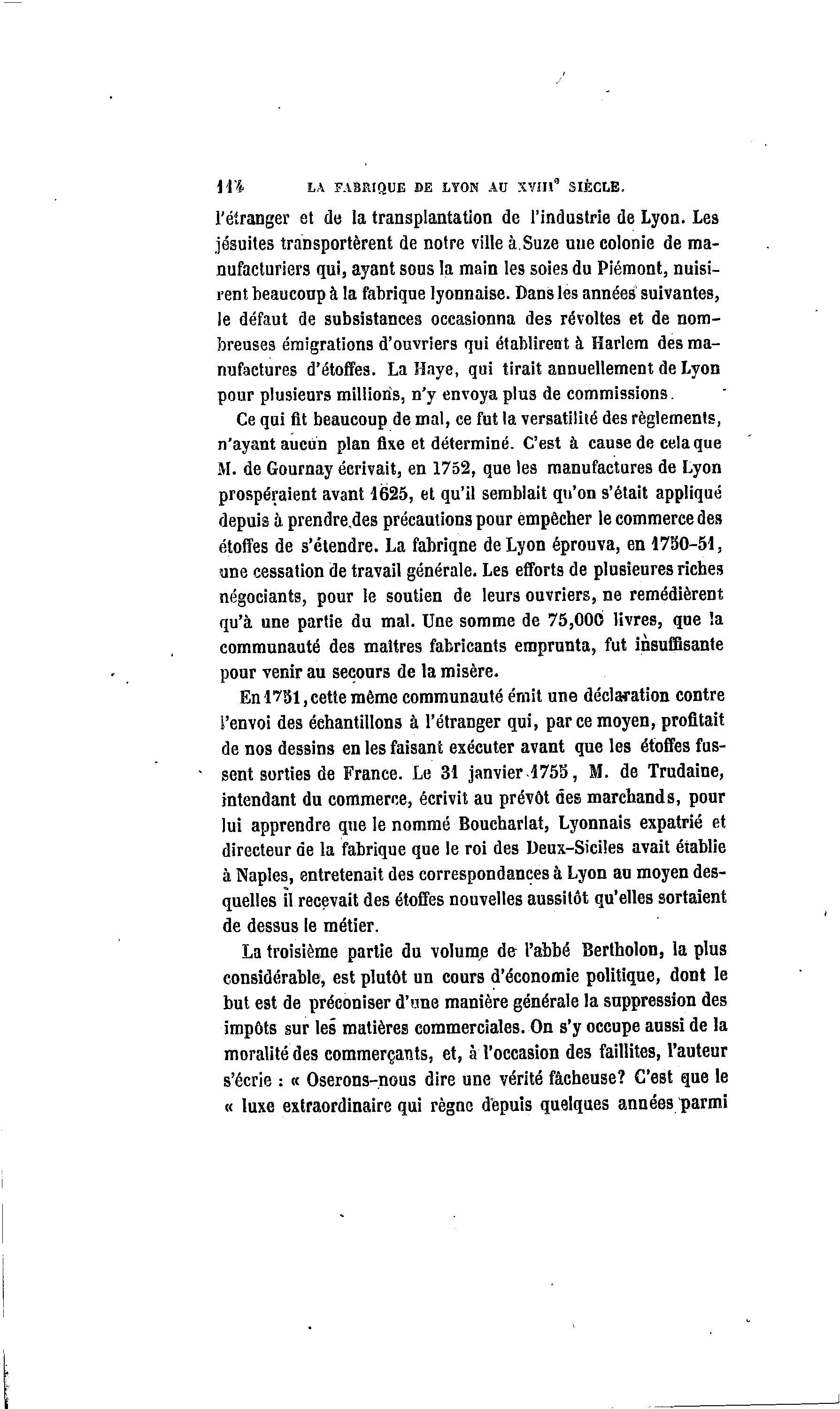M. de Gournay écrivait, en 1752, que les manufactures de Lyon