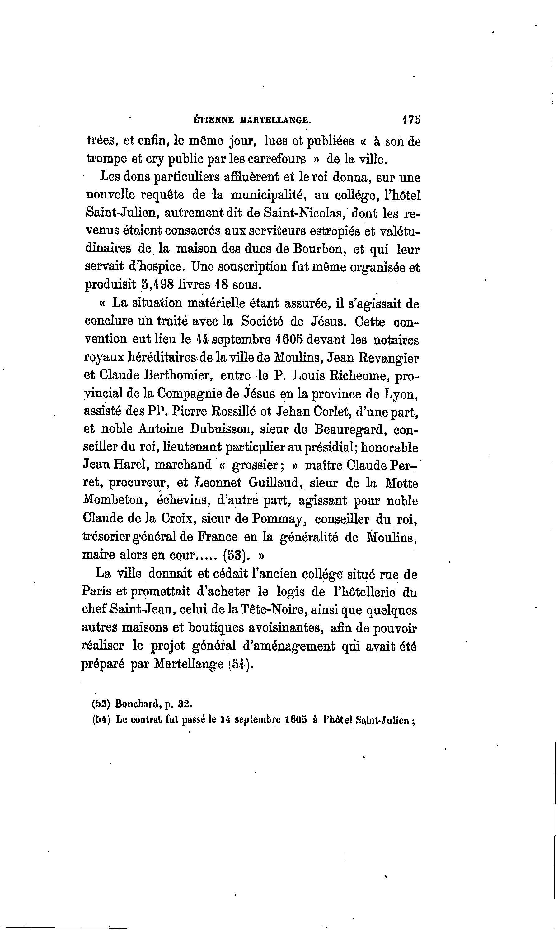 (54) Le contrat fut passé le 14 septembre 1605 à l'hôtel Saint-Julien ;