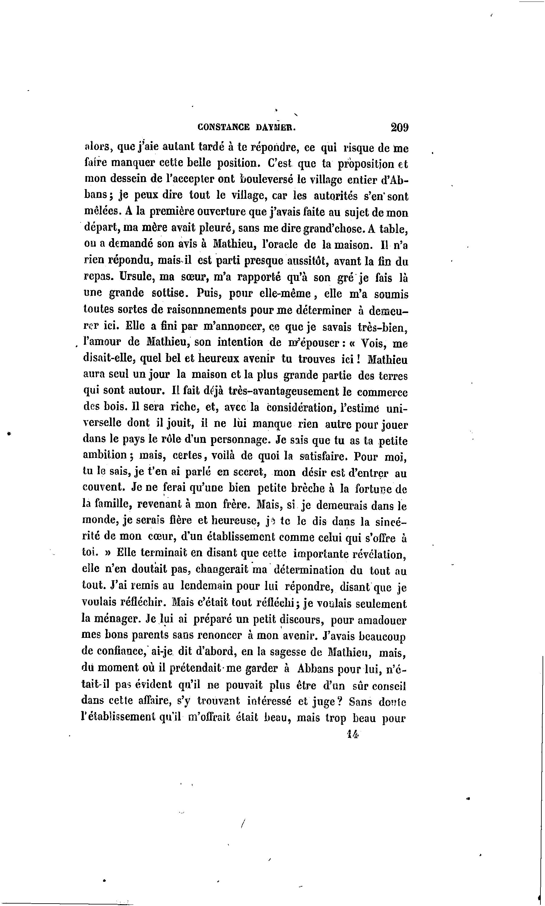 l'amour de Mathieu, son intention de n/épouser : « Vois, me