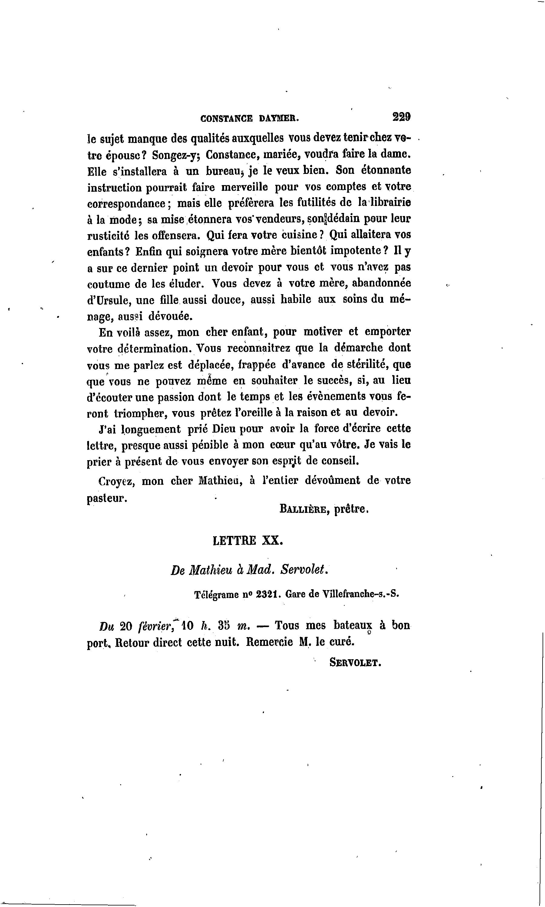 De Mathieu à Mad. Servolet.