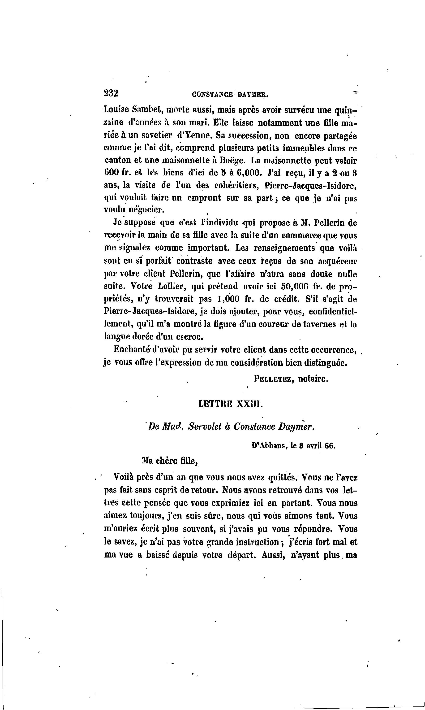 De Mad. Servolet à Constance Daymer.