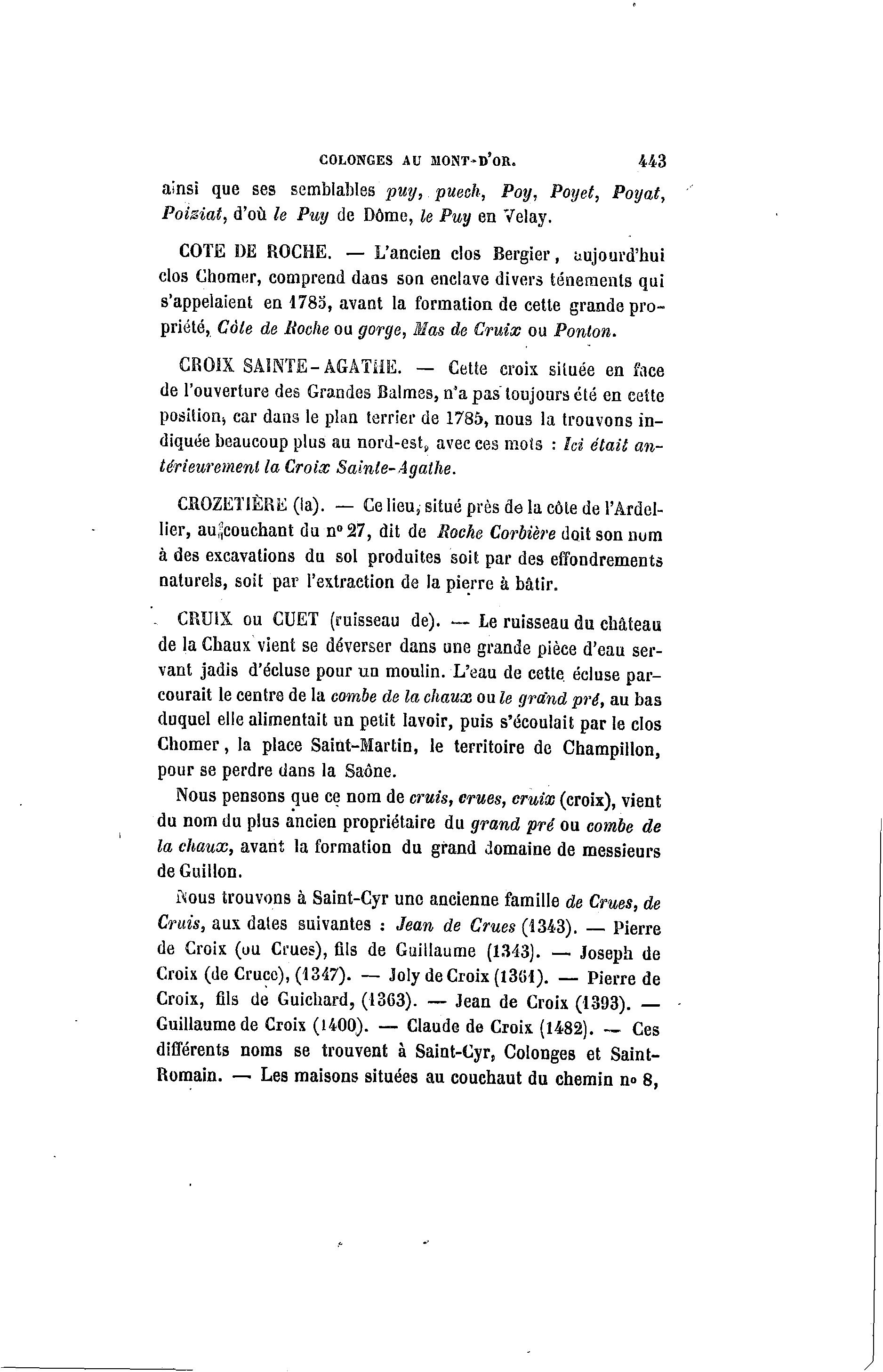 priété, Gale de Hoche ou gorge, Mas de Cruix ou Ponton.