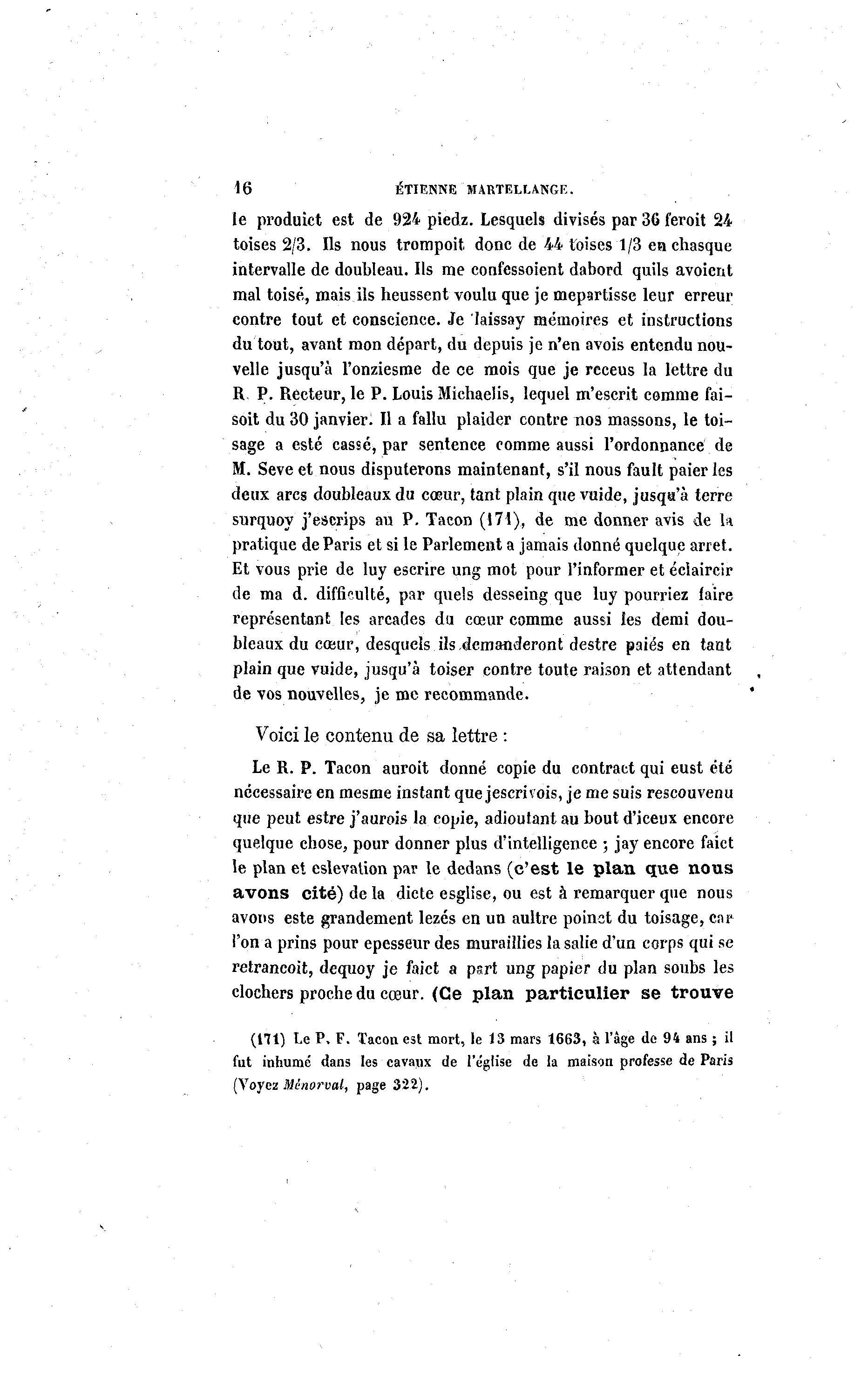 (171) Le P . F . Tacon est mort, le 13 mars 1663, à l'âge de 94 ans ; il