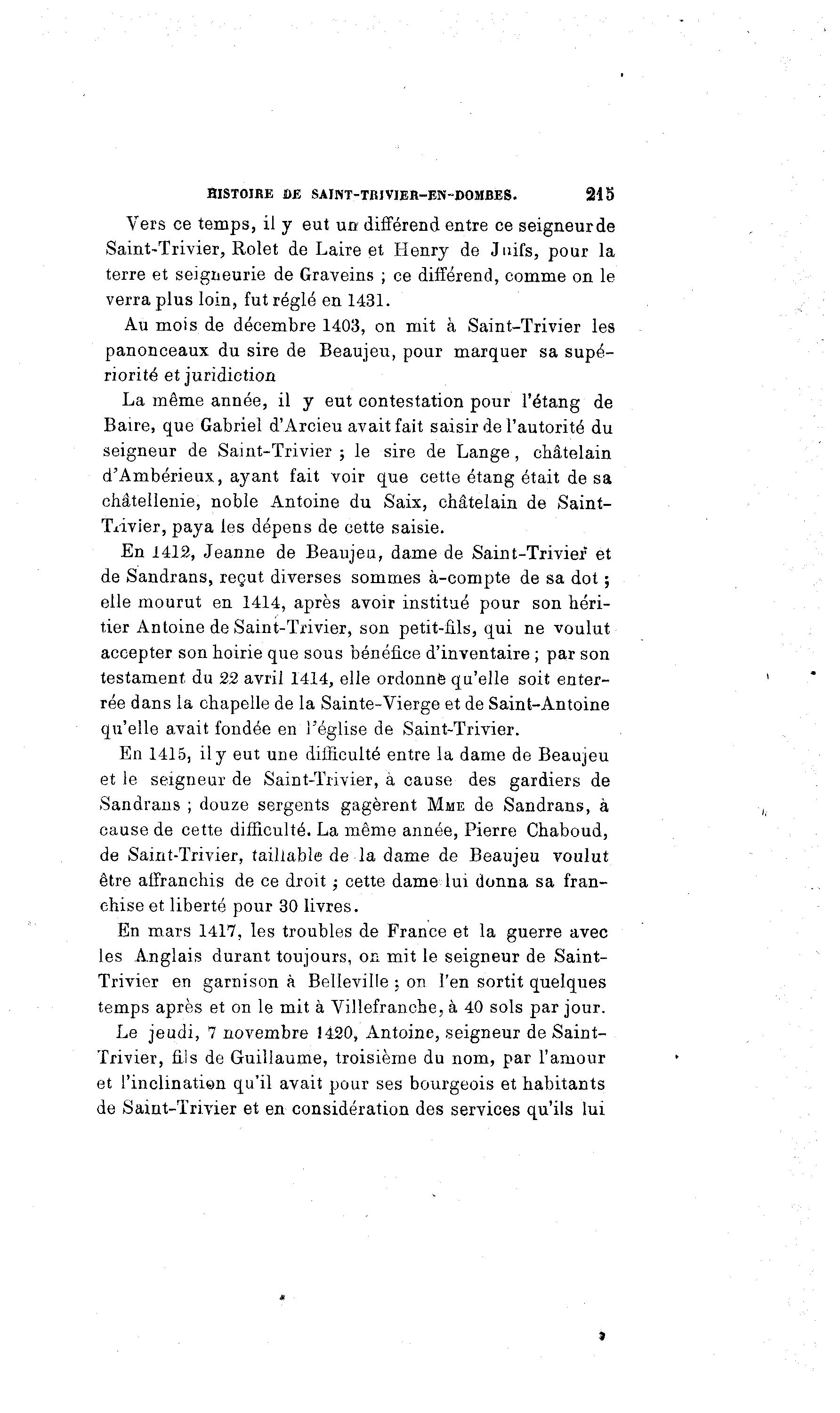 HISTOIRE DE SAINT-TRIVIEH-EN-DOMBES. 215