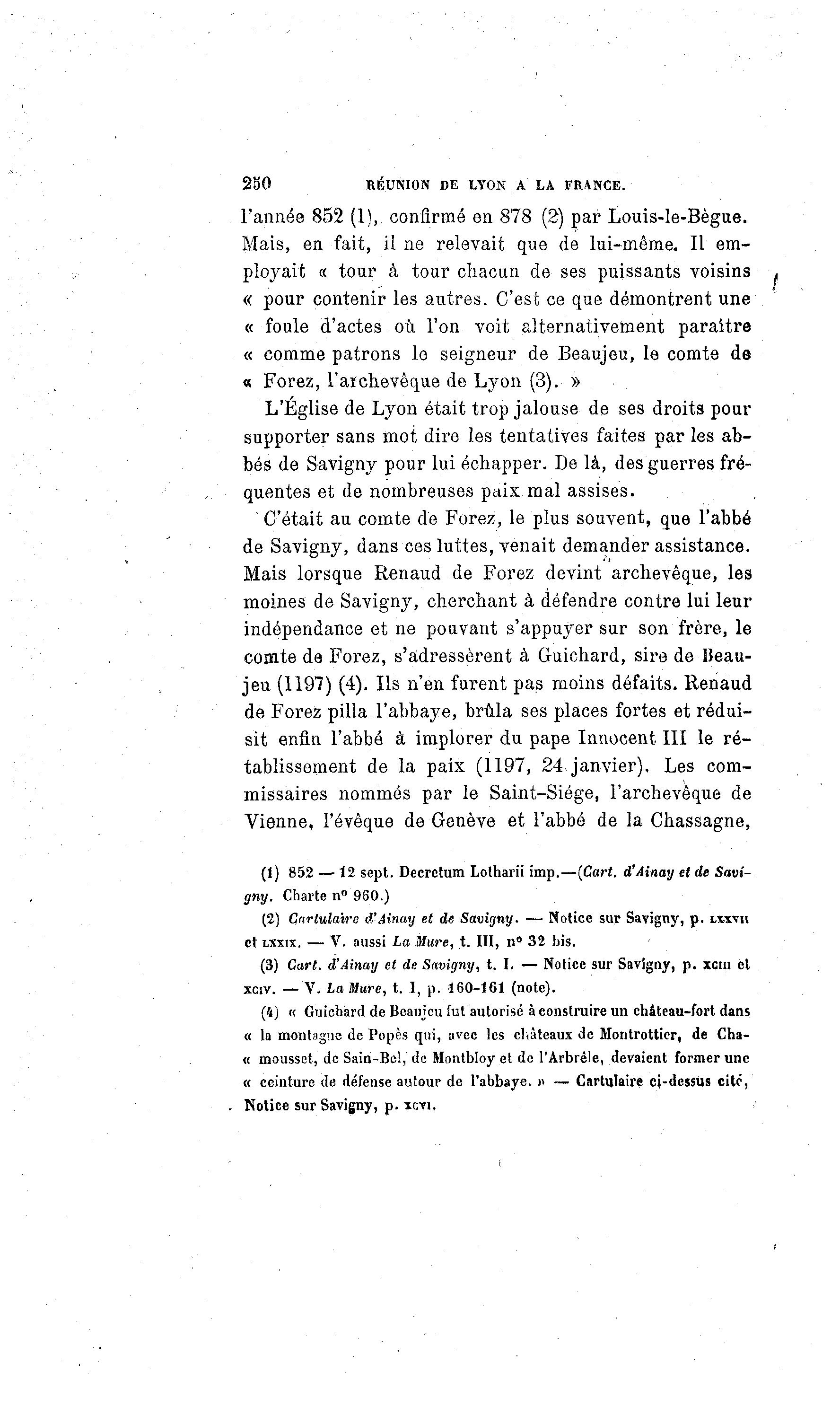 (3) Cart. d'Ainay et de Savigny, t. I. — Notice sur Savigny, p. xcm et