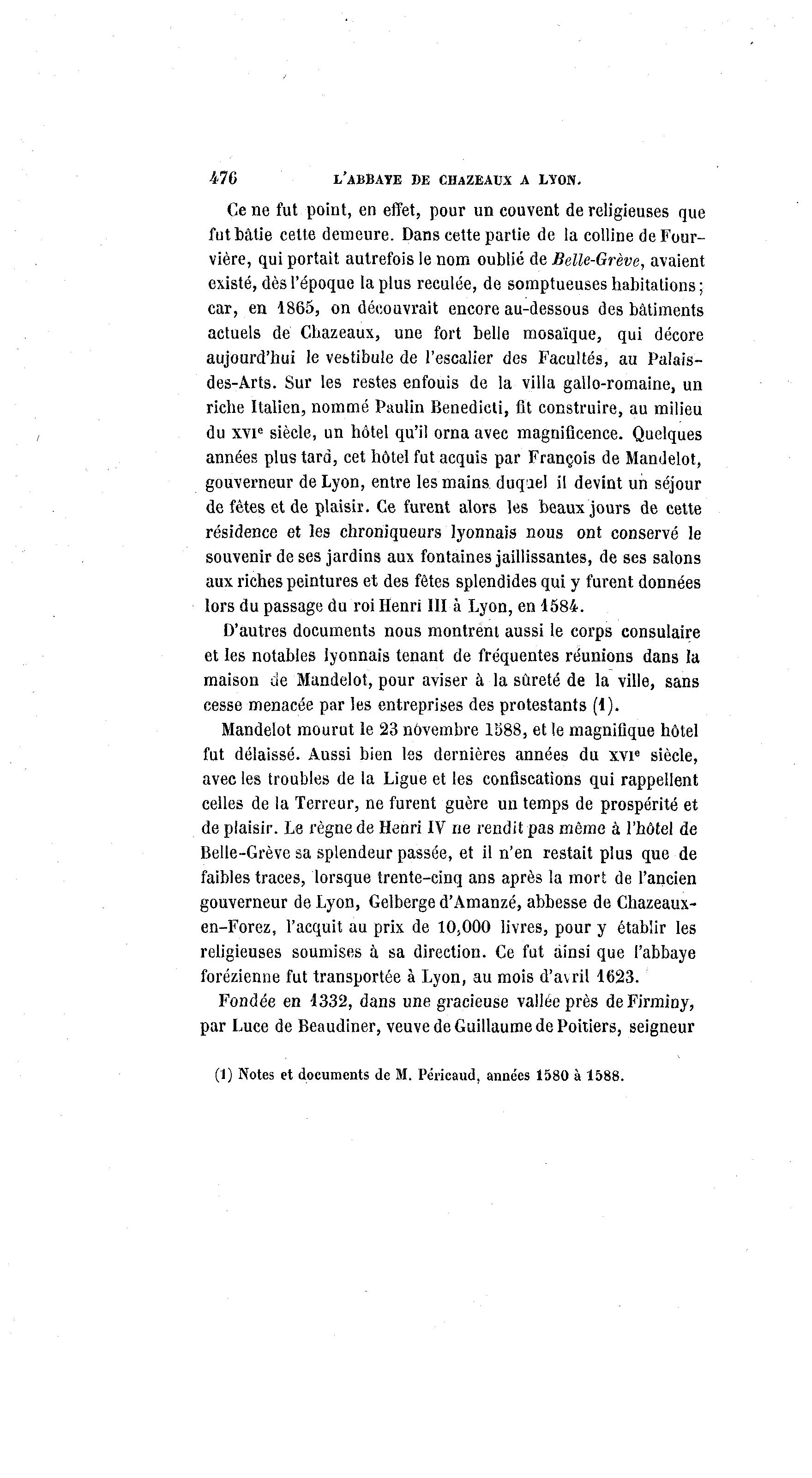476 L'ABBAYE DE CHAZEAUX A LYON.