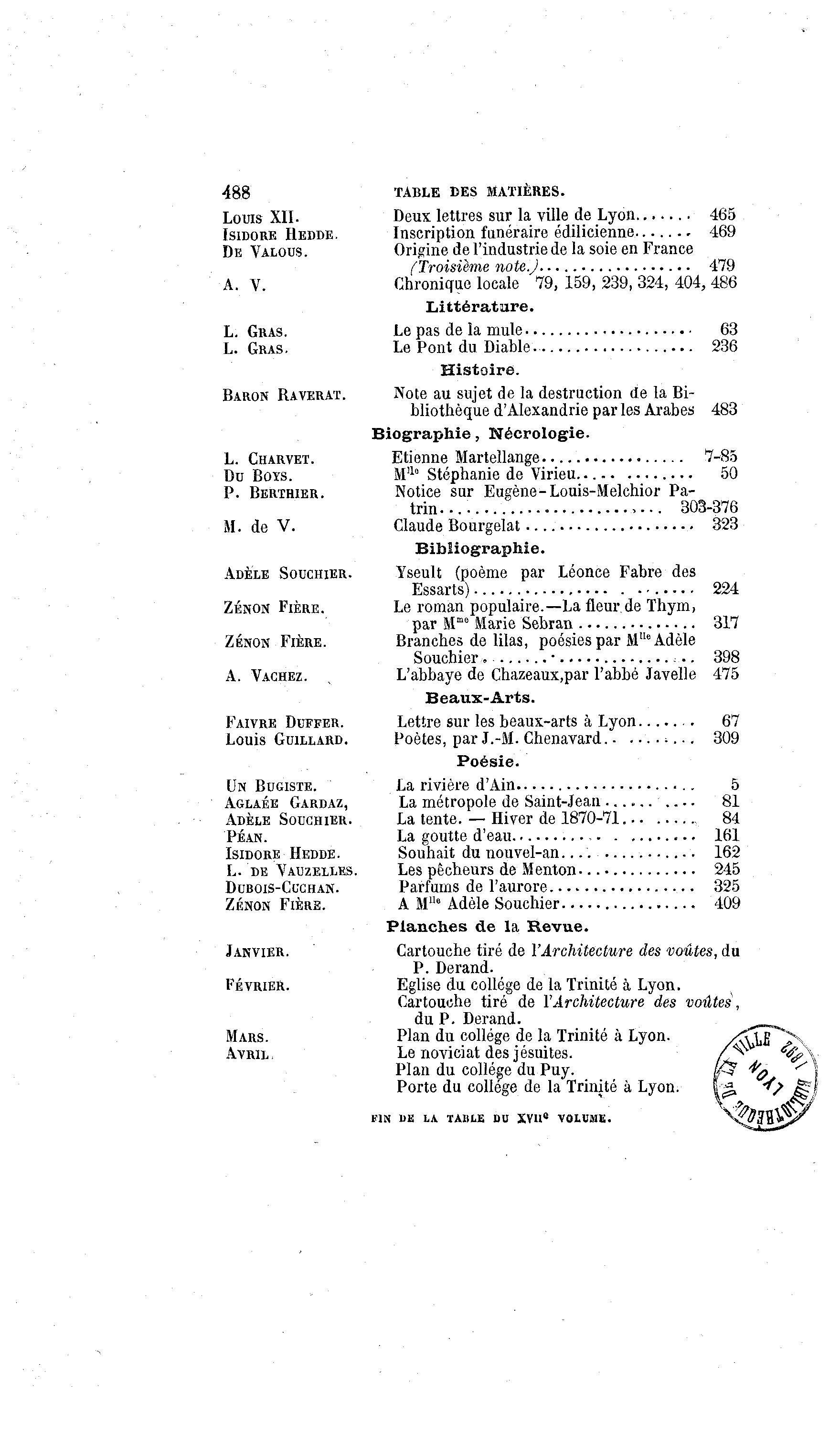 488 TABLE DES MATIÈRES.