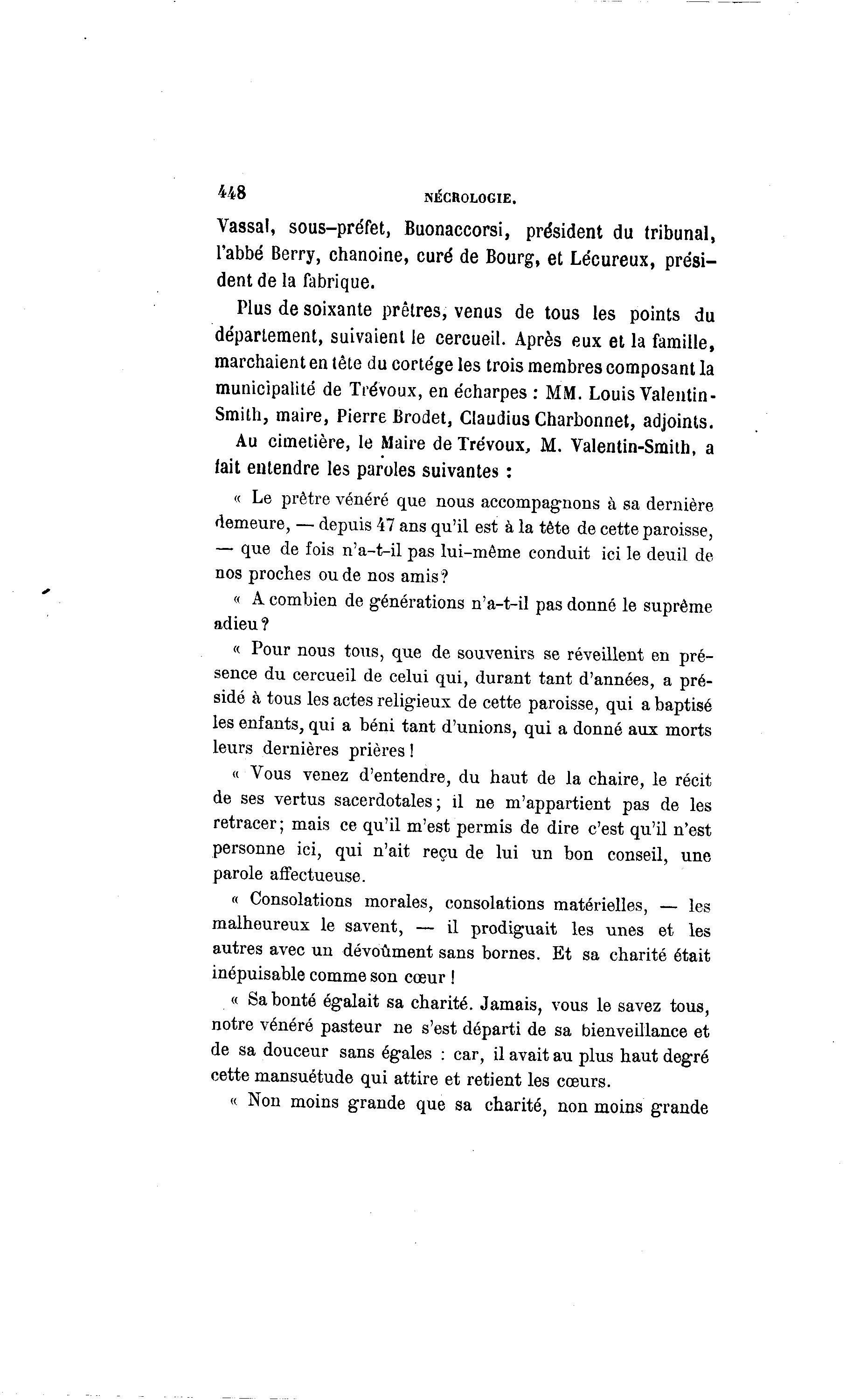 Au cimetière, le Maire de Trévoux, M. Valentin-Smith, a