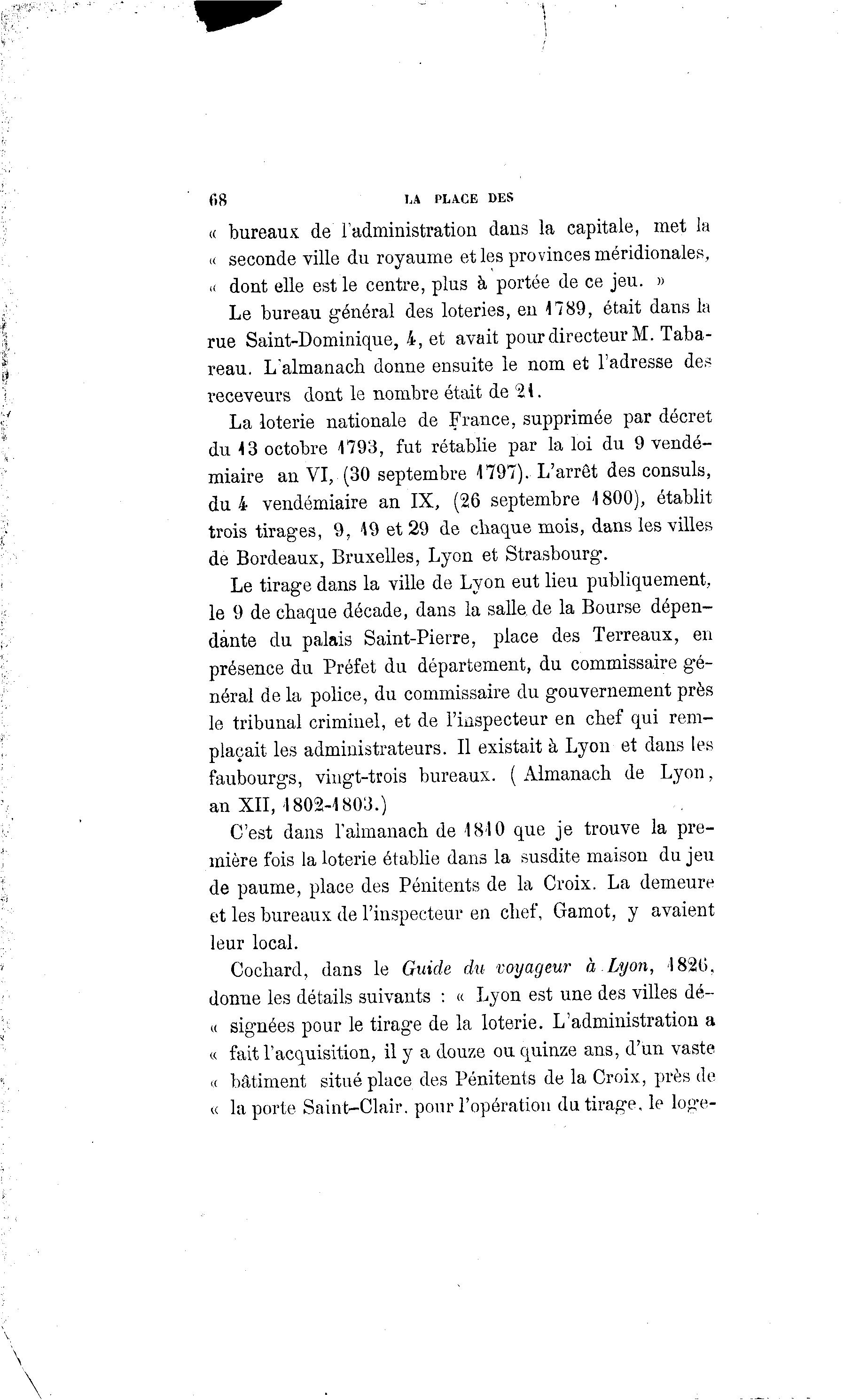 Cochard, dans le Guide du voyageur a Lyon, 1820,