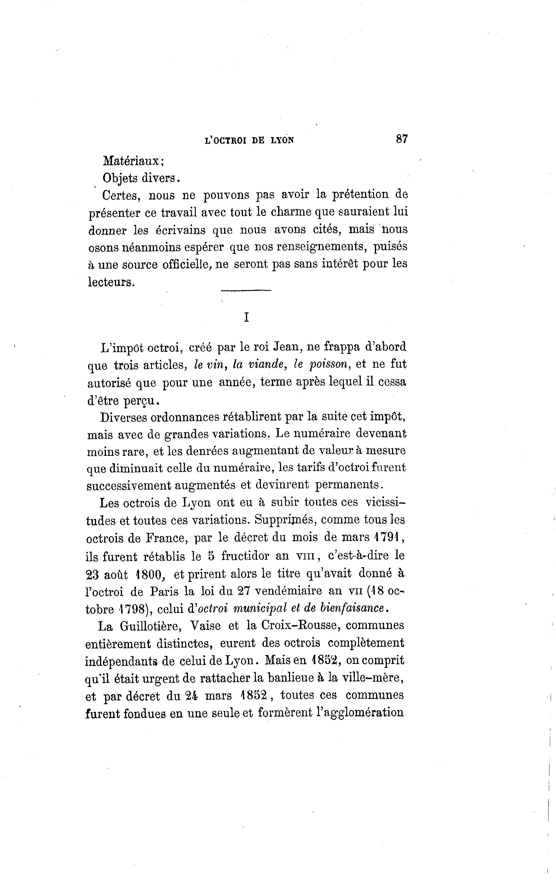 Les octrois de Lyon ont eu à subir toutes ces vicissi-