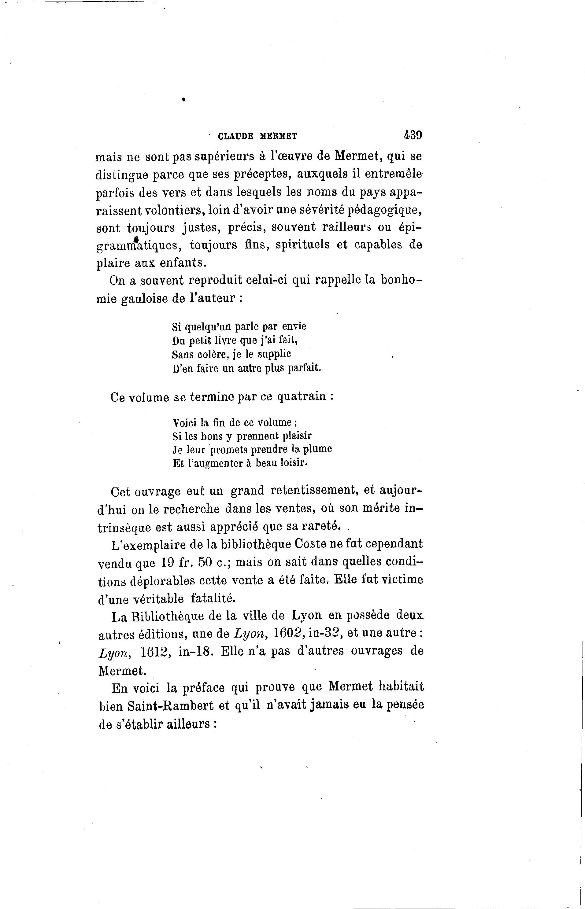 En voici la préface qui prouve que Mermet habitait