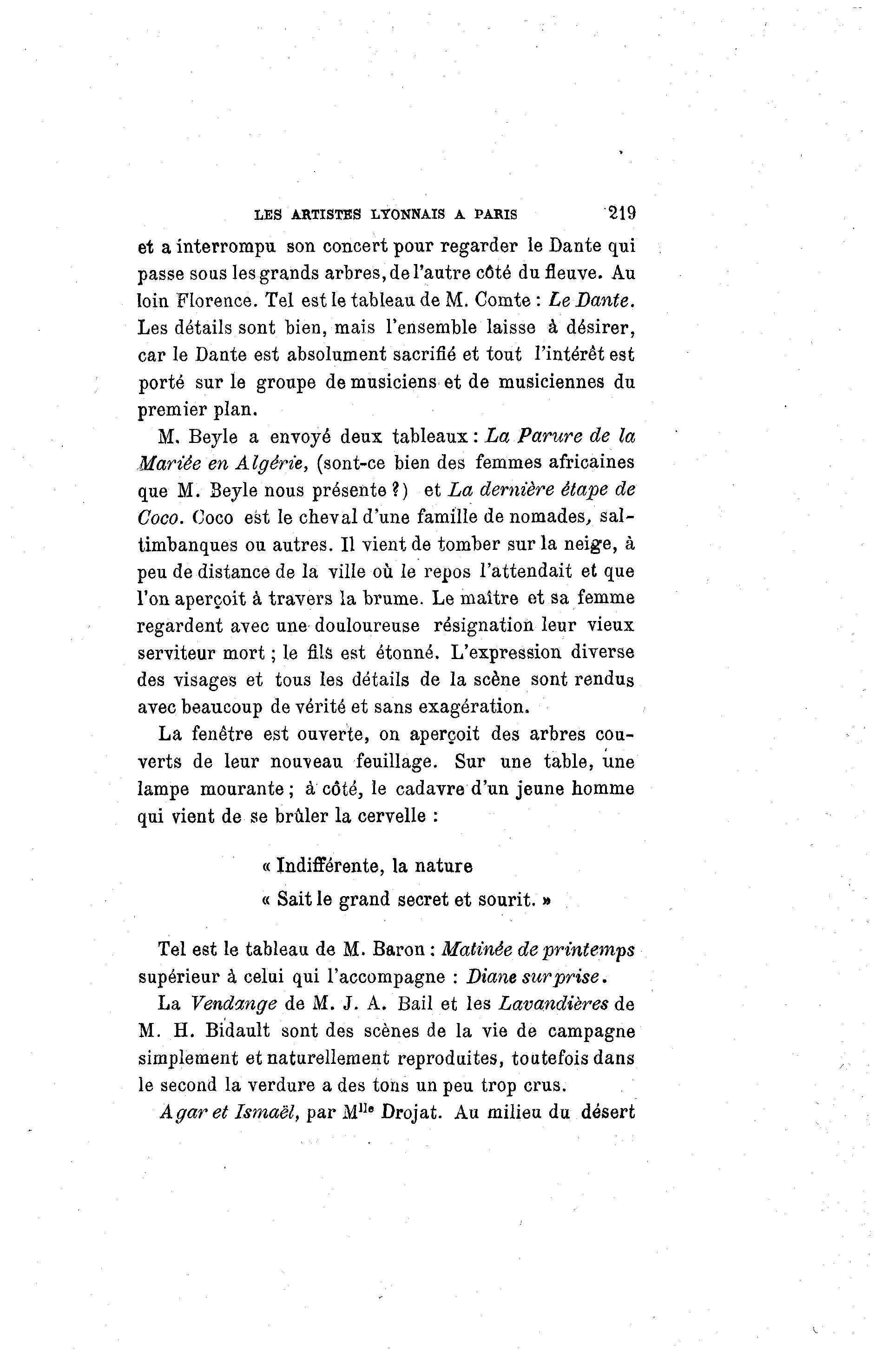 M. Beyle a envoyé deux tableaux : La Parure de la