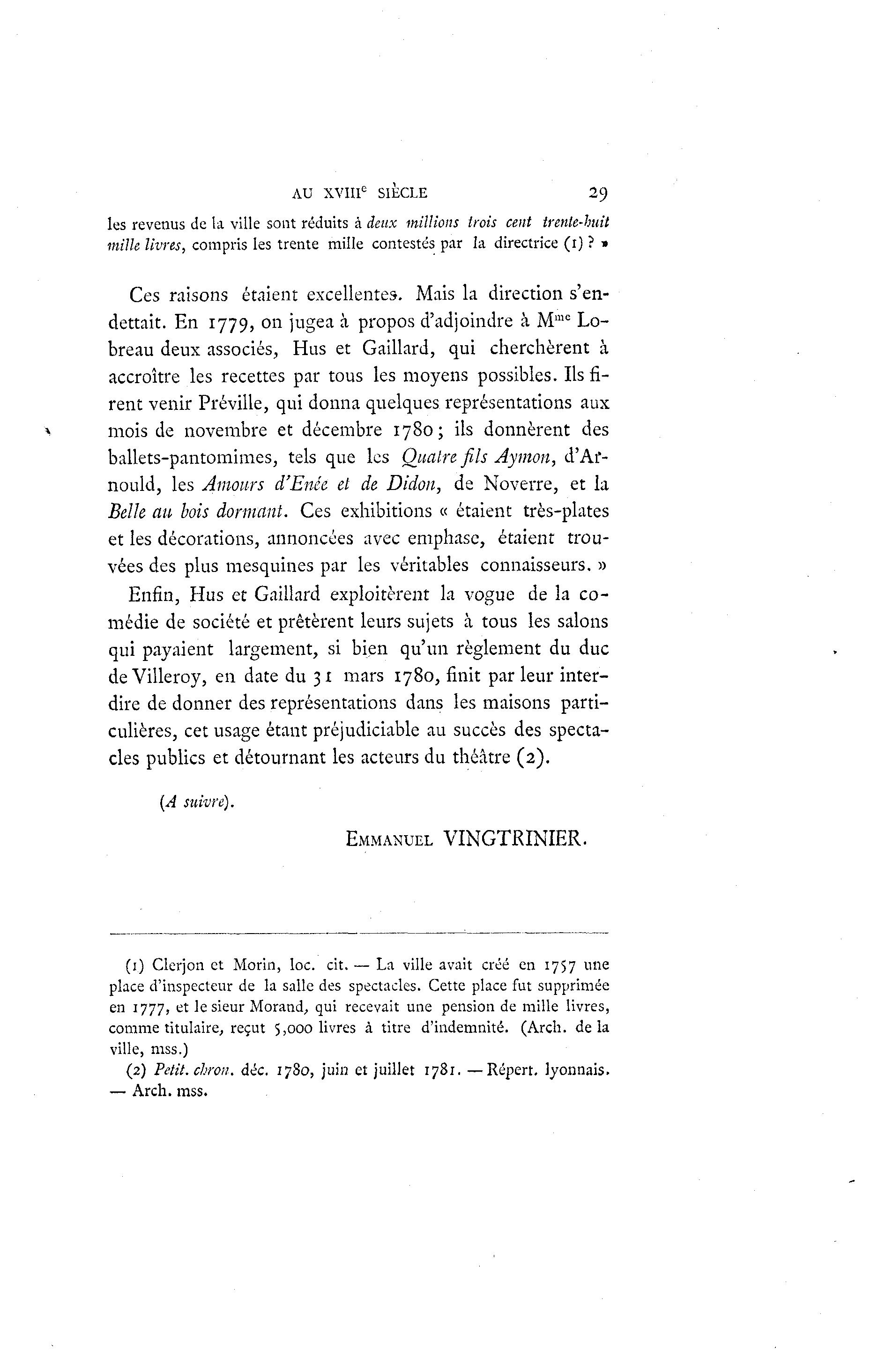 (1) Clerjon et Morin, loc. cit. — La ville avait créé en 1757 une