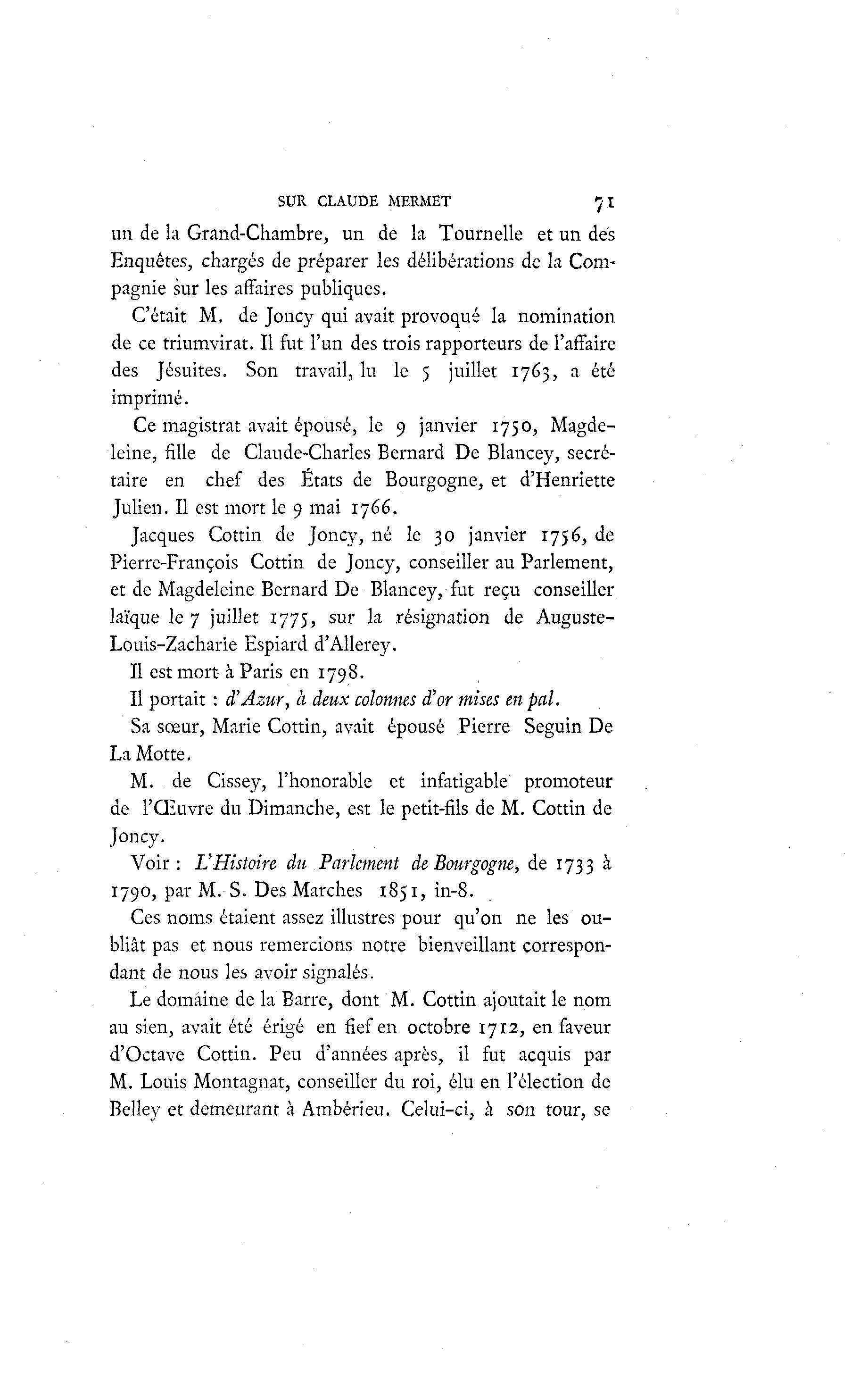 Voir: L'Histoire du Parlement de Bourgogne, de 1733 à