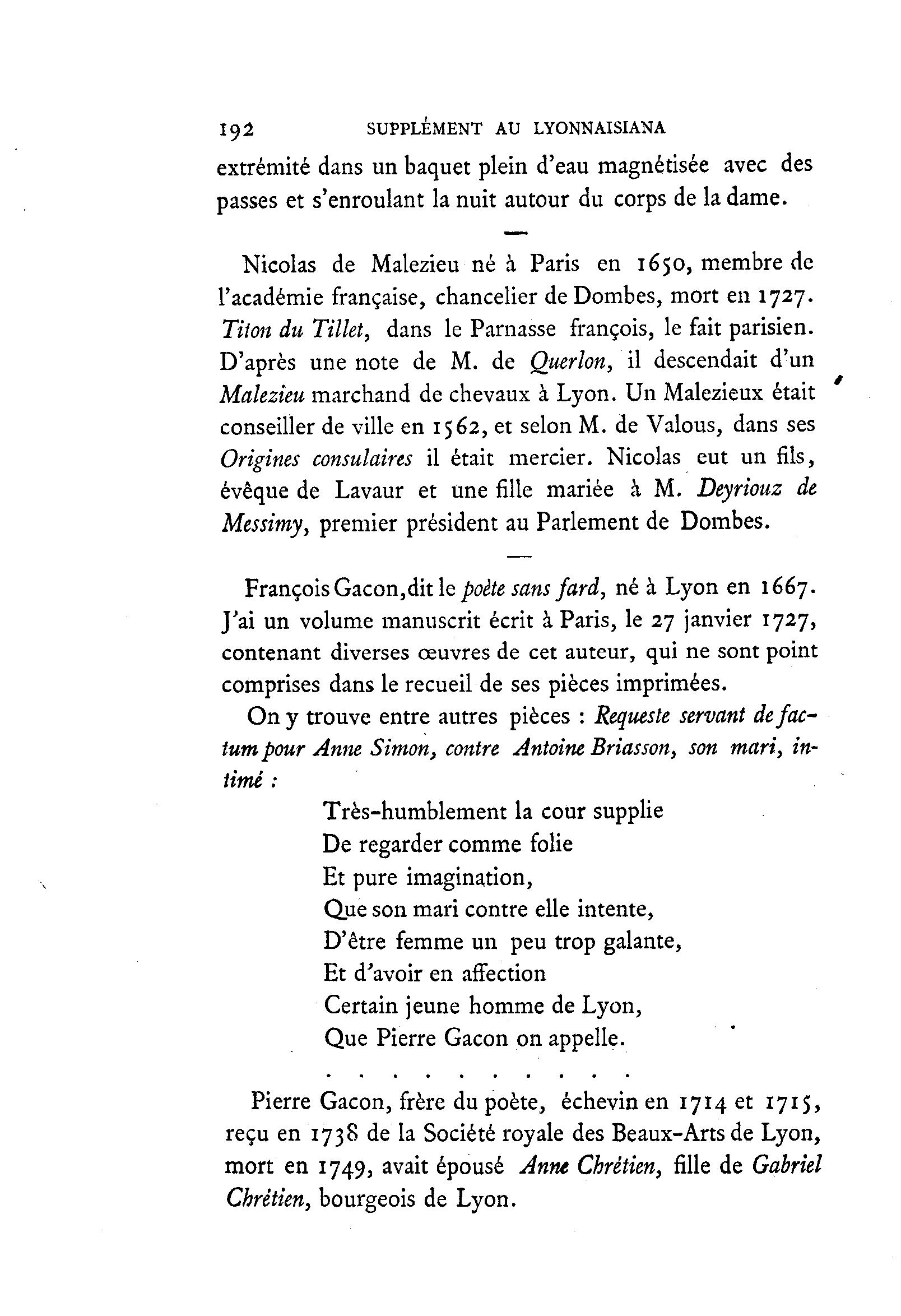 I92 SUPPLÉMENT AU LYONNAISIANA