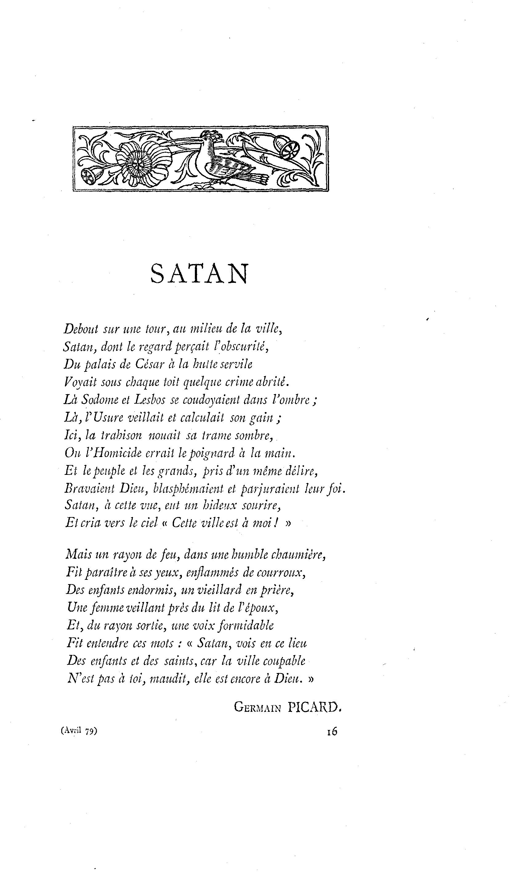 Fit entendre ces mots : « Satan, vois en ce lieu