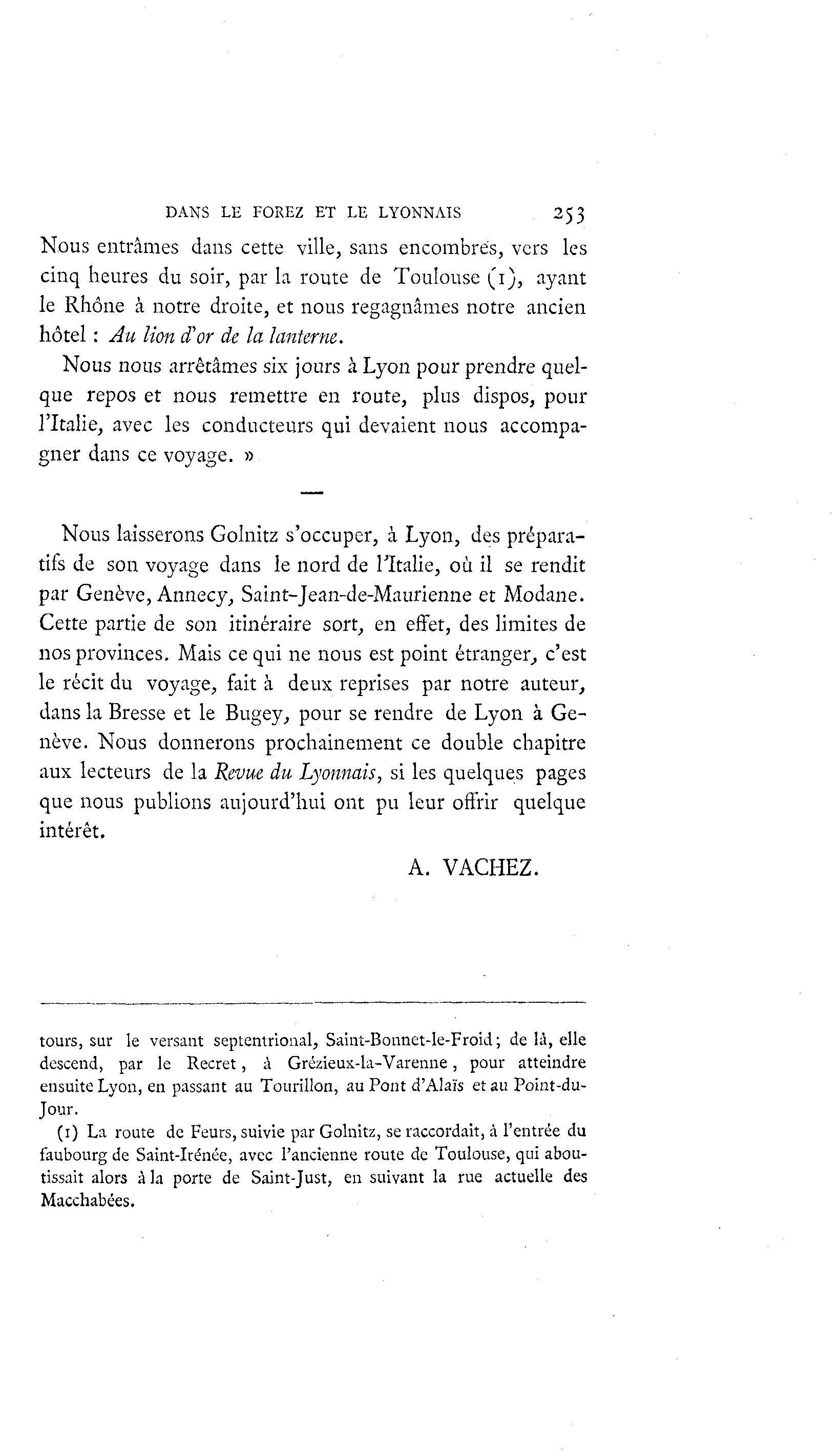 (1) La route de Feurs, suivie par Golnitz, se raccordait, à l'entrée du