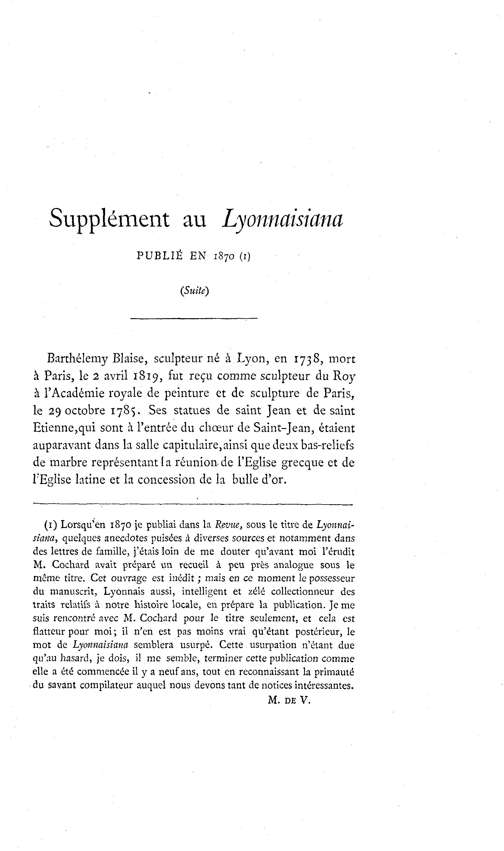 mot de Lyonnaisiana semblera usurpé. Cette usurpation n'étant due
