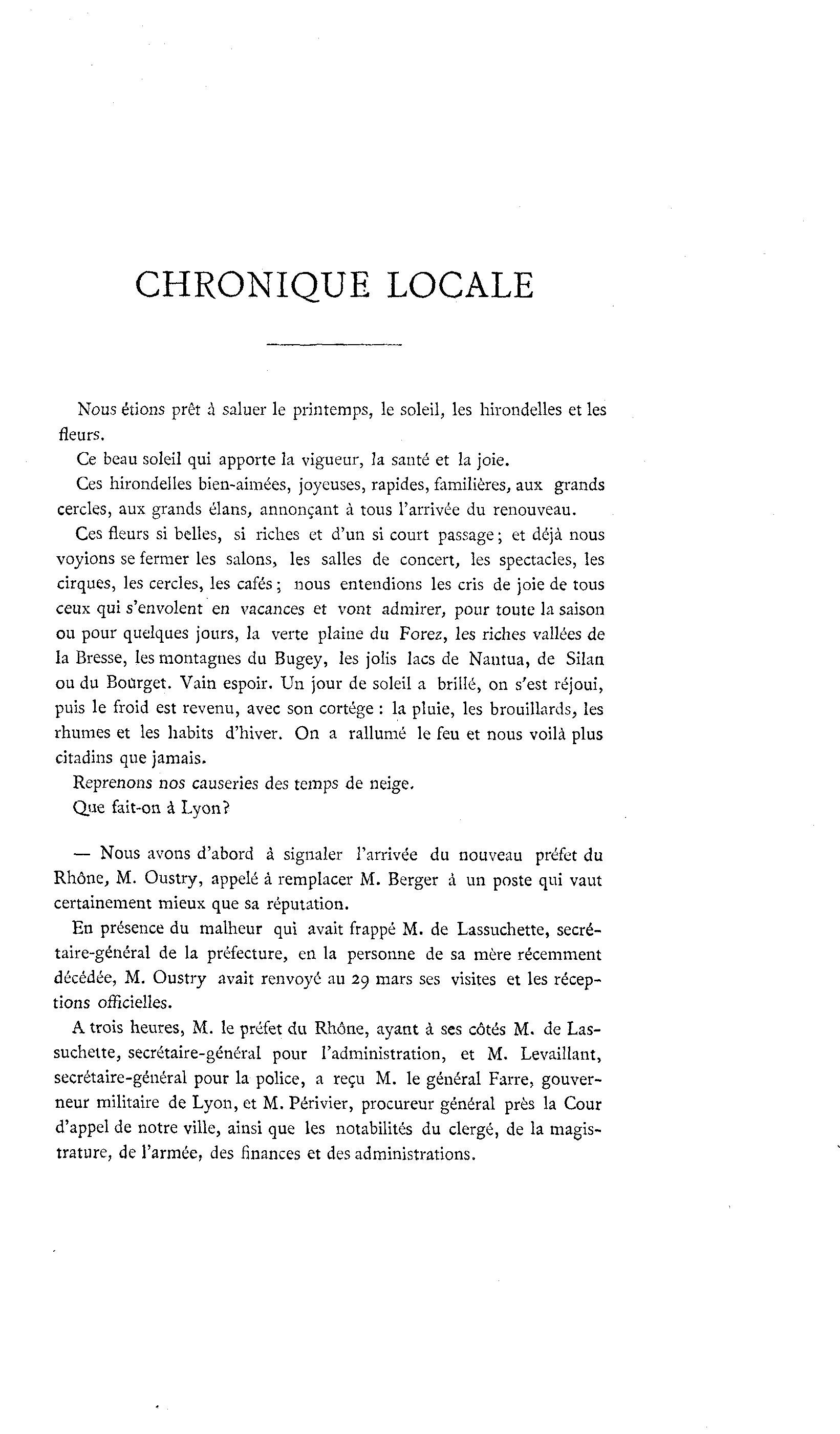 — Nous avons d'abord à signaler l'arrivée du nouveau préfet du
