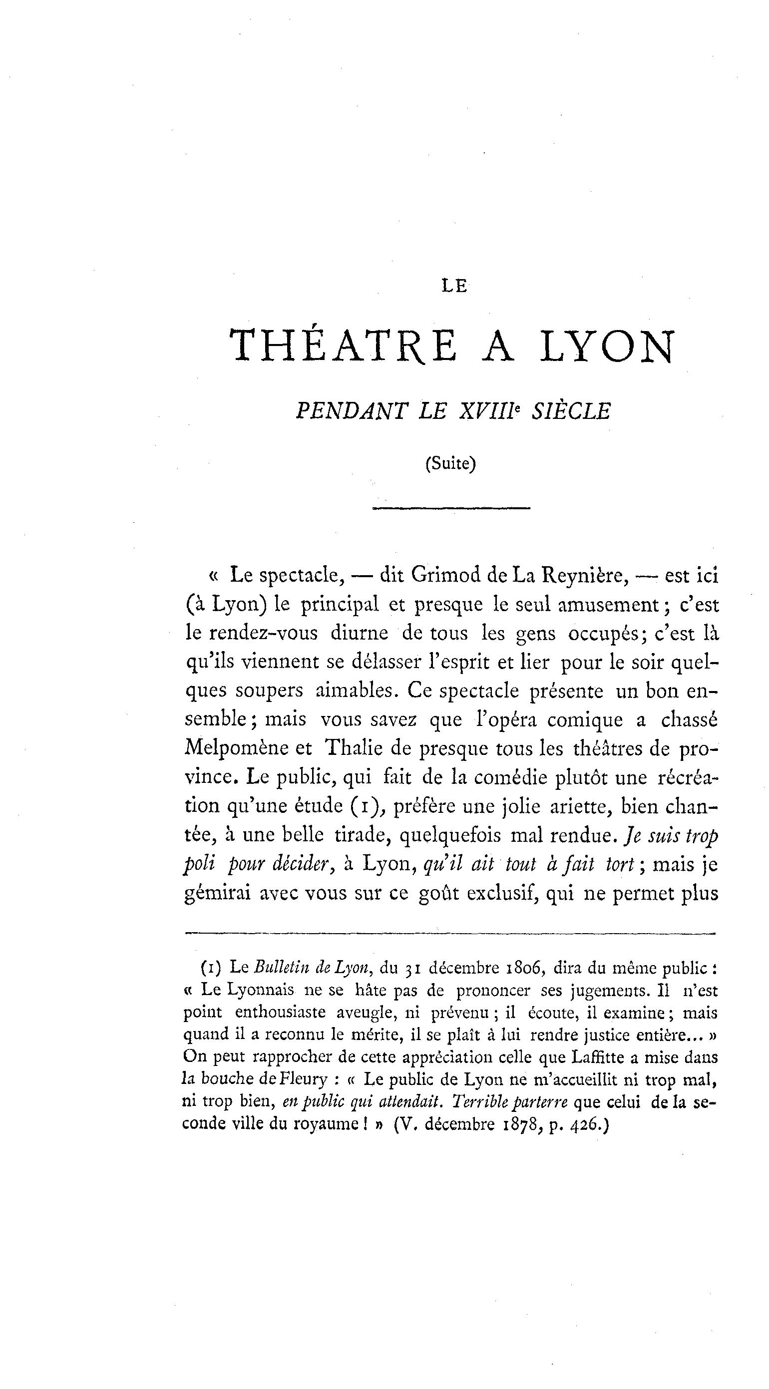 (i) Le Bulletin de Lyon, du 31 décembre 1806, dira du même public :