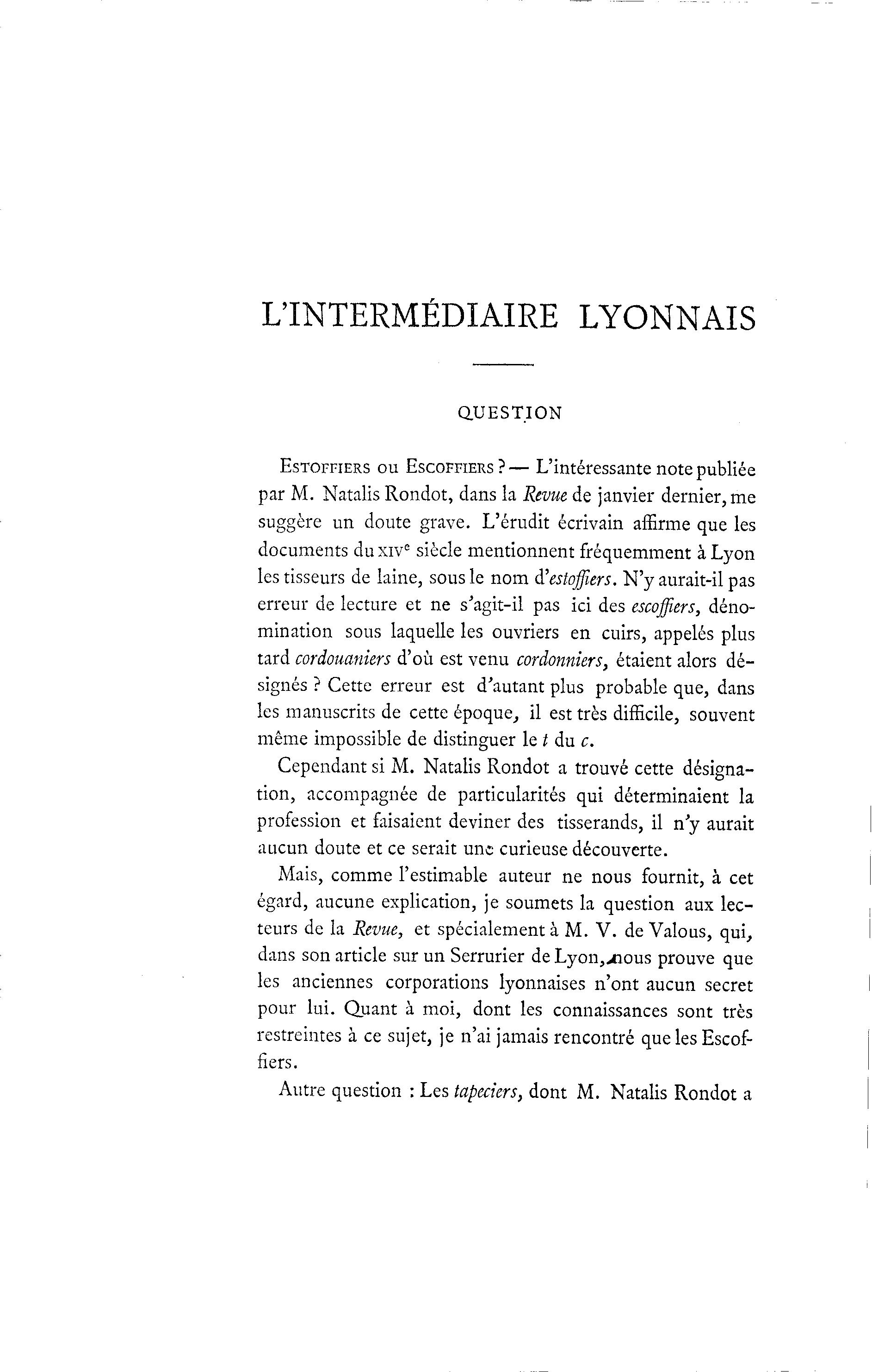 L'INTERMÉDIAIRE LYONNAIS