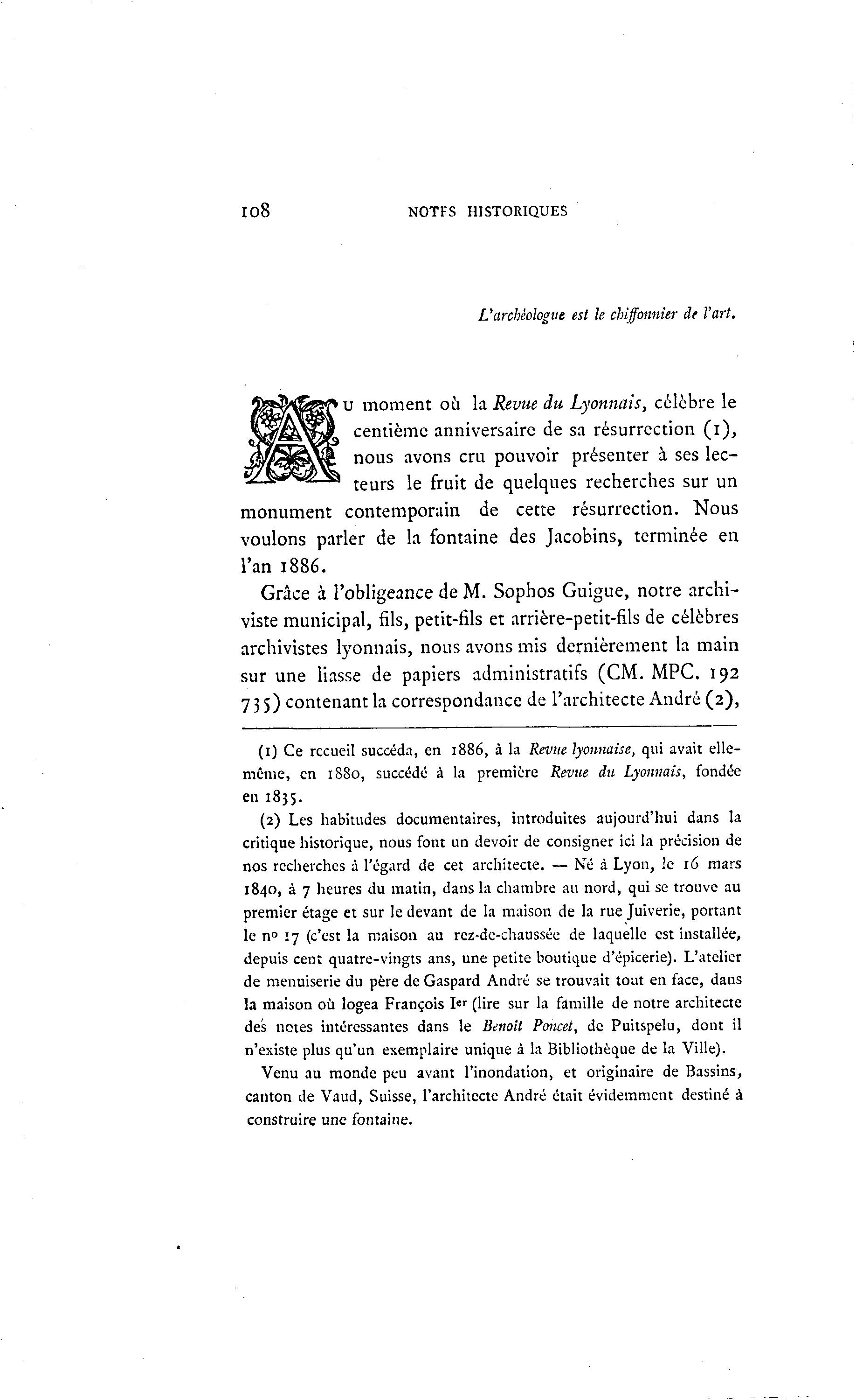 (1) Ce recueil succéda, en 1886, à la Revue lyonnaise, qui avait elle-