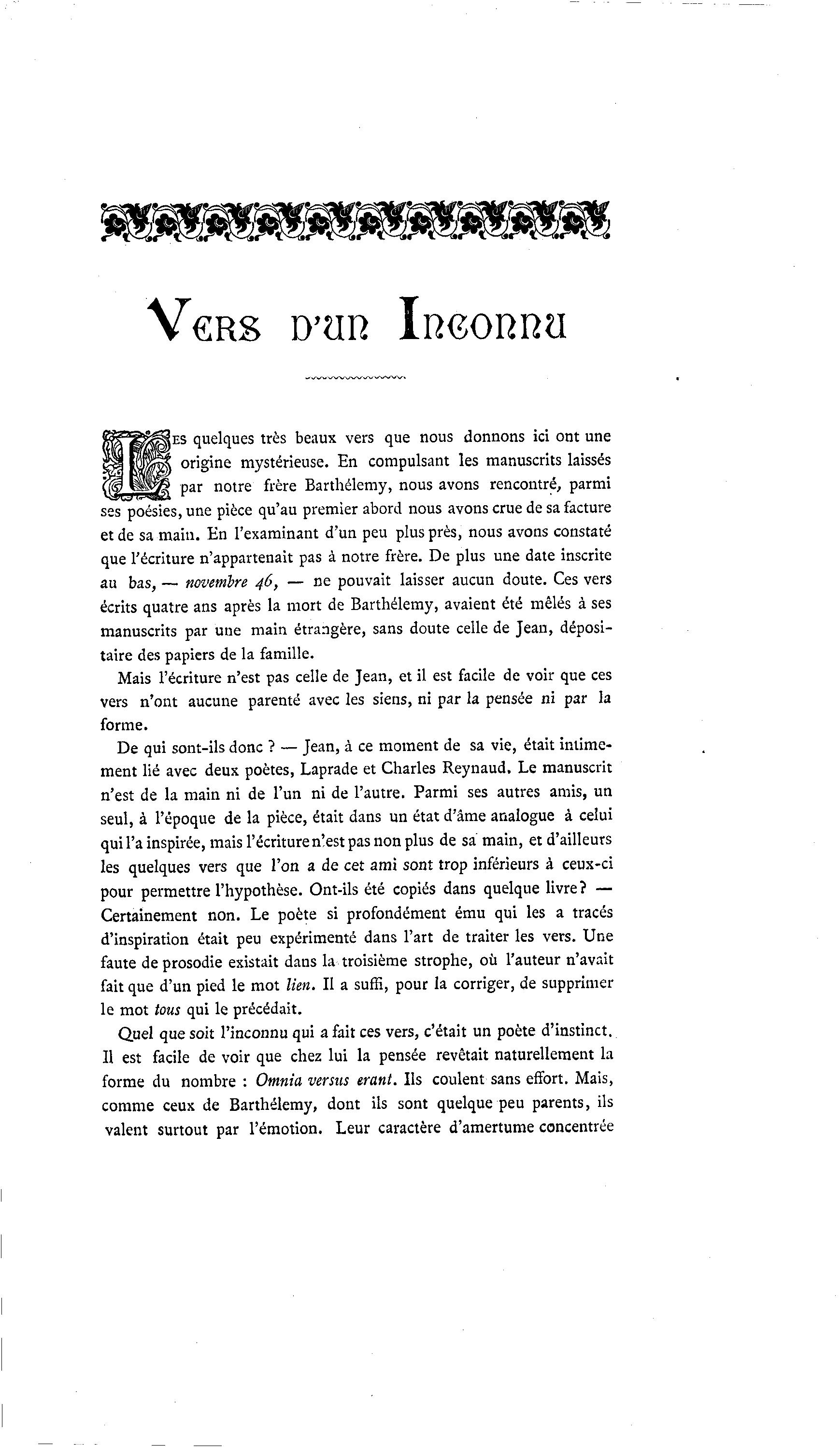 ment lié avec deux poètes, Laprade et Charles Reynaud. Le manuscrit