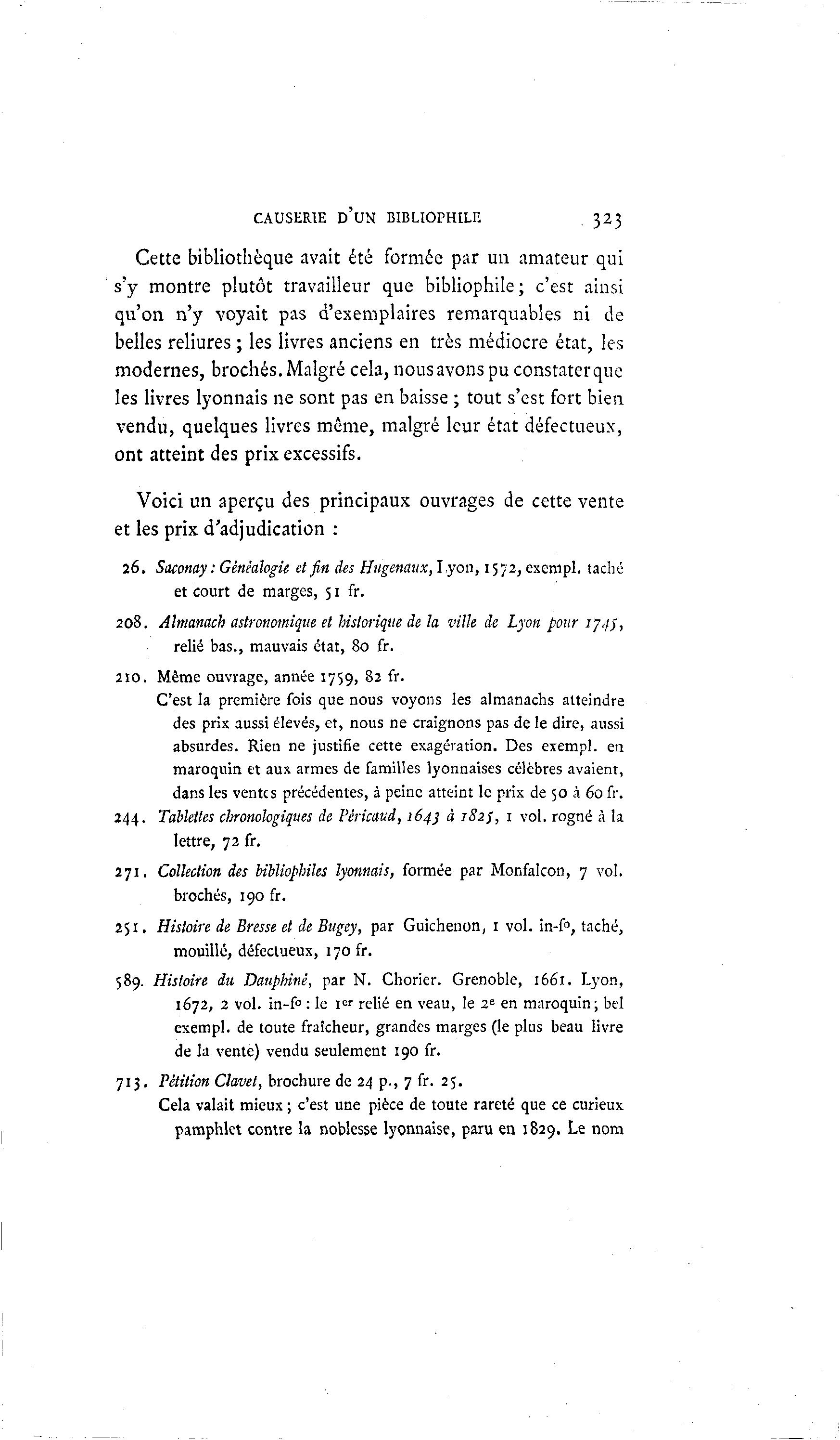 CAUSERIE D'UN BIBLIOPHILE 323