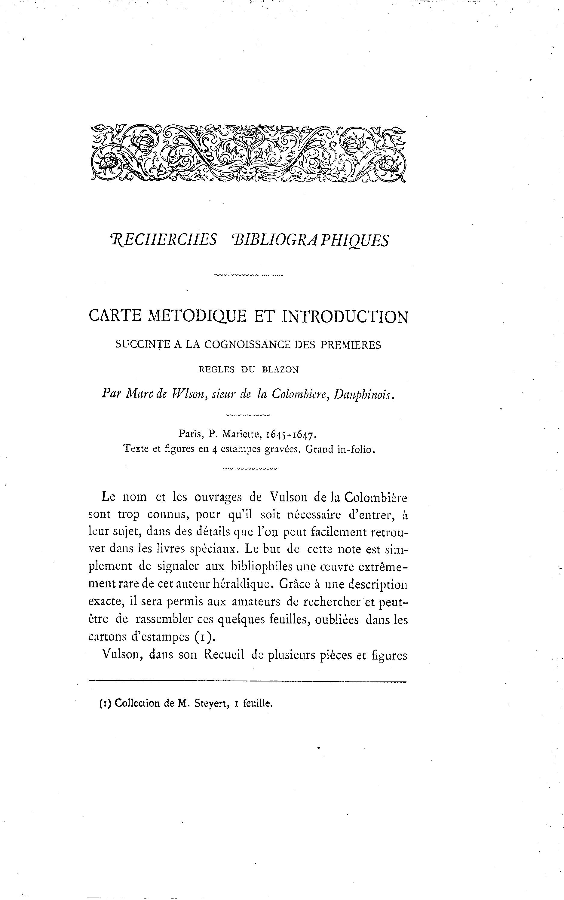 Vulson, dans son Recueil de plusieurs pièces et figures