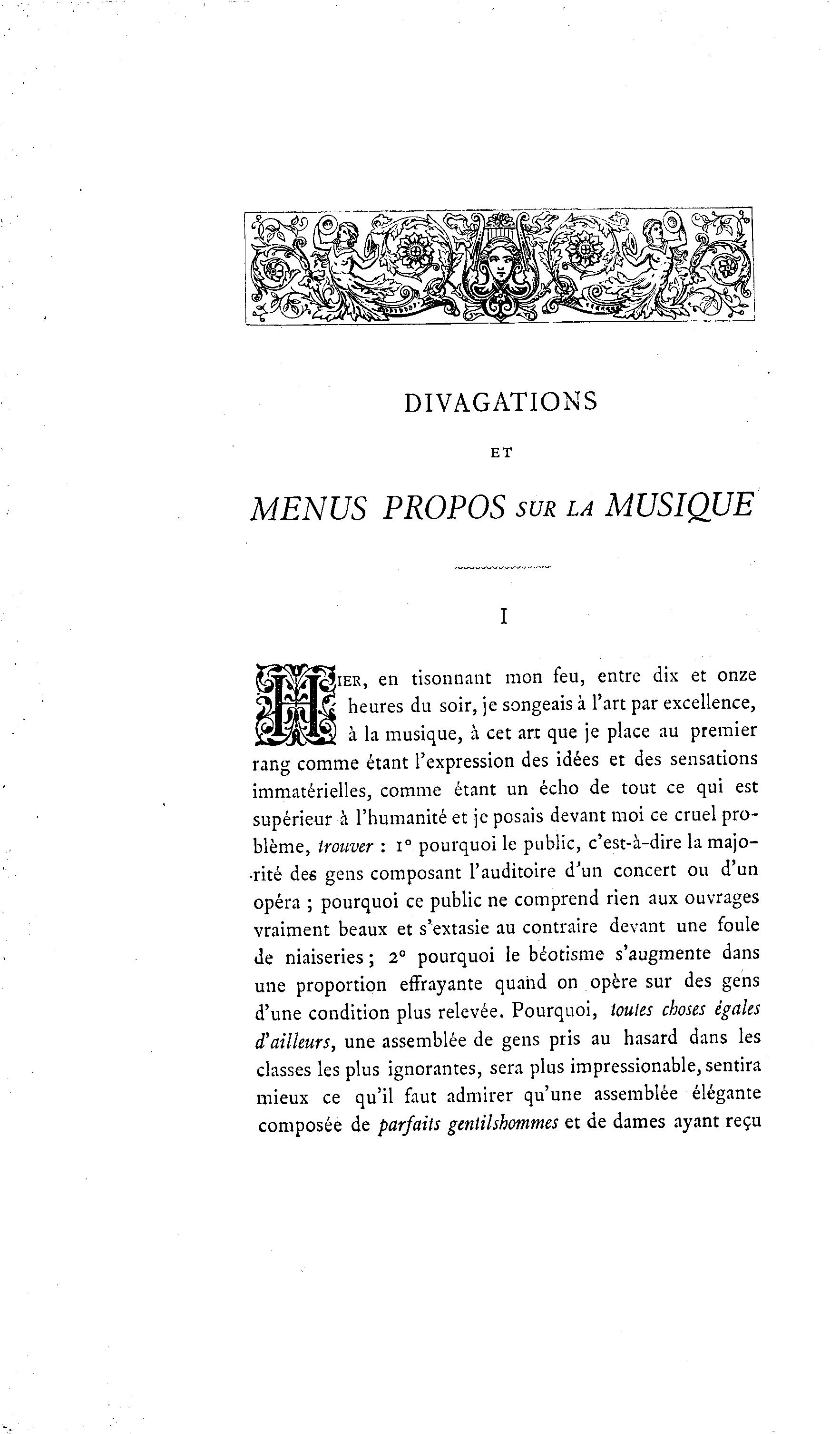 heures du soir, je songeais à l'art par excellence,