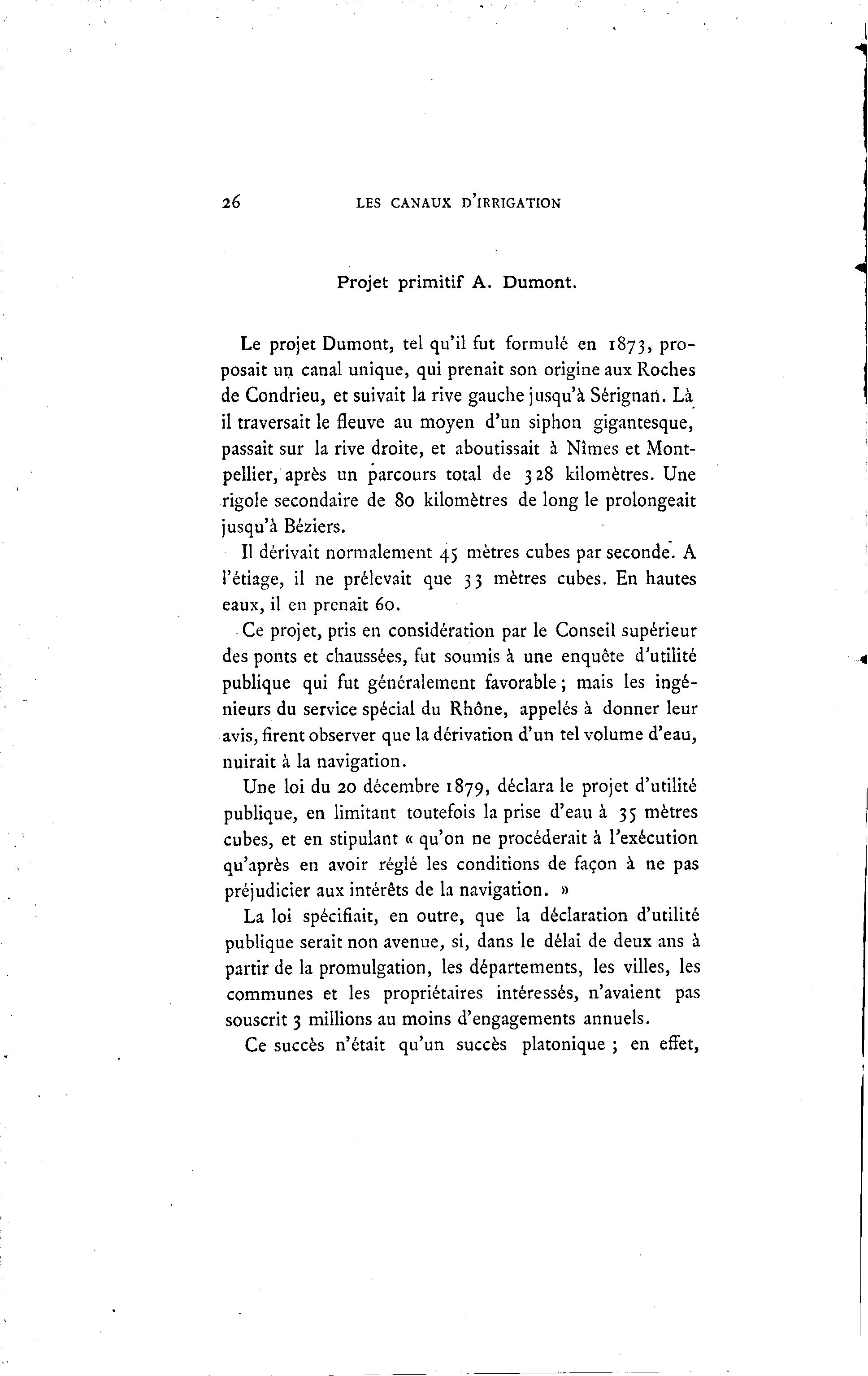 Une loi du 20 décembre 1879, déclara le projet d'utilité