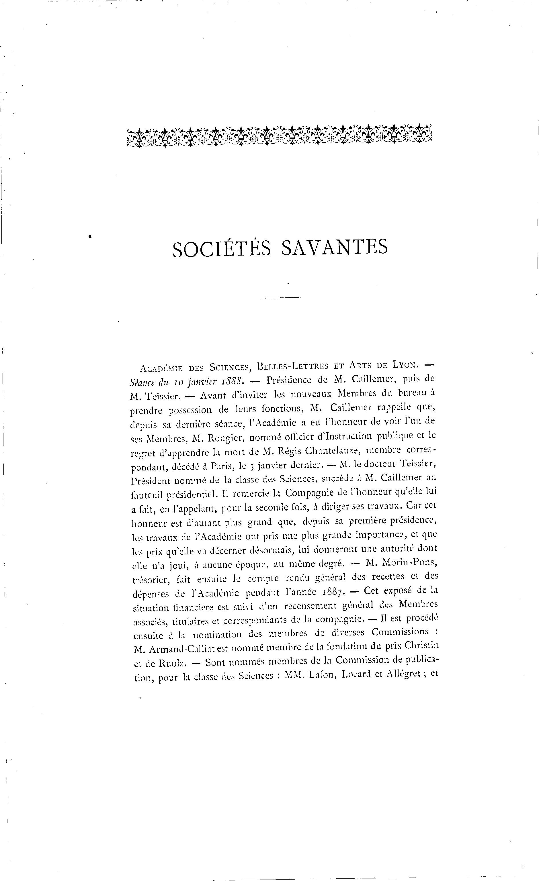 ACADl-MIE DES SCIENCES, BELLES-LETTRES ET ARTS DE LYON. —