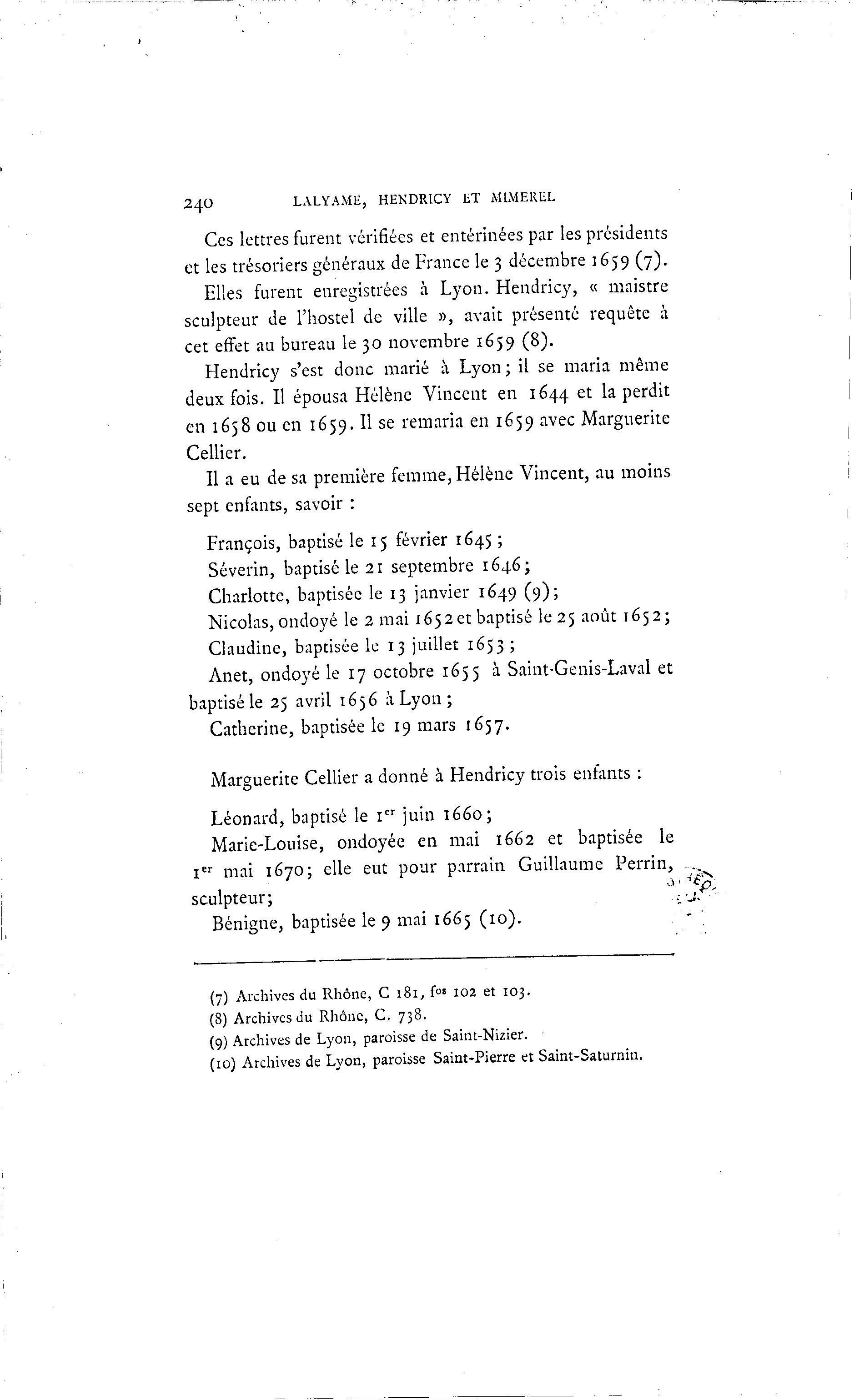Elles furent enregistrées h Lyon. Hendricy, « maistre
