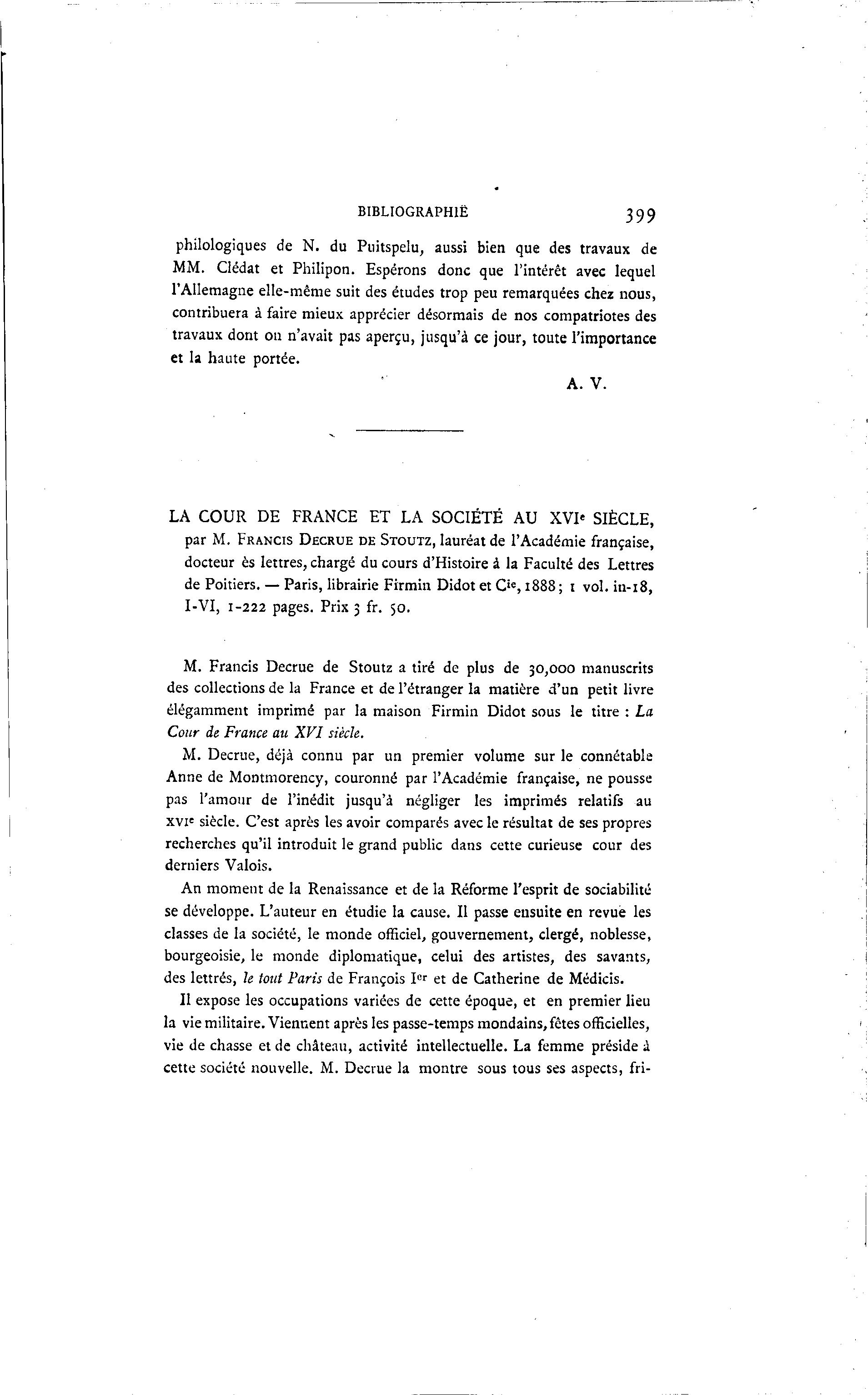 LA COUR DE FRANCE ET LA SOCIÉTÉ AU XVI' SIÈCLE,