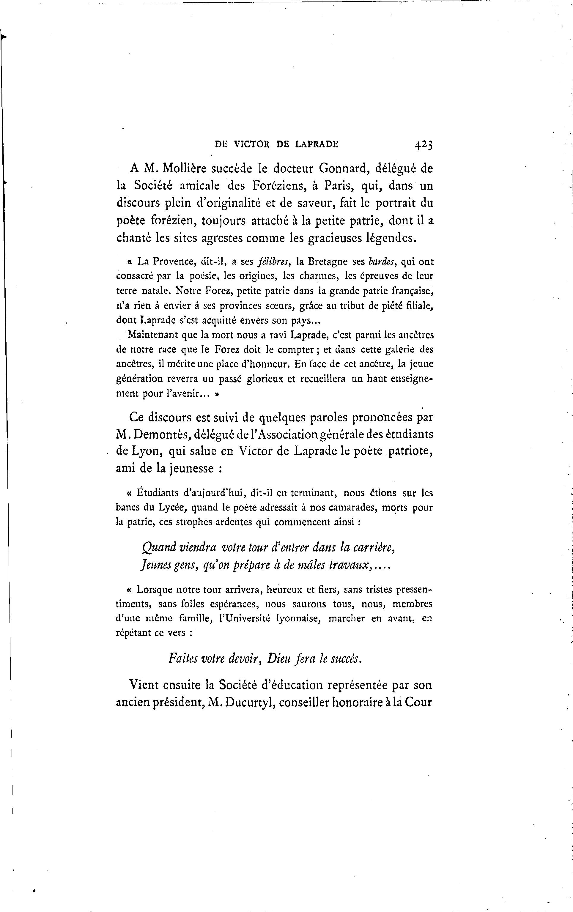 de Lyon, qui salue en Victor de Laprade le poète patriote,