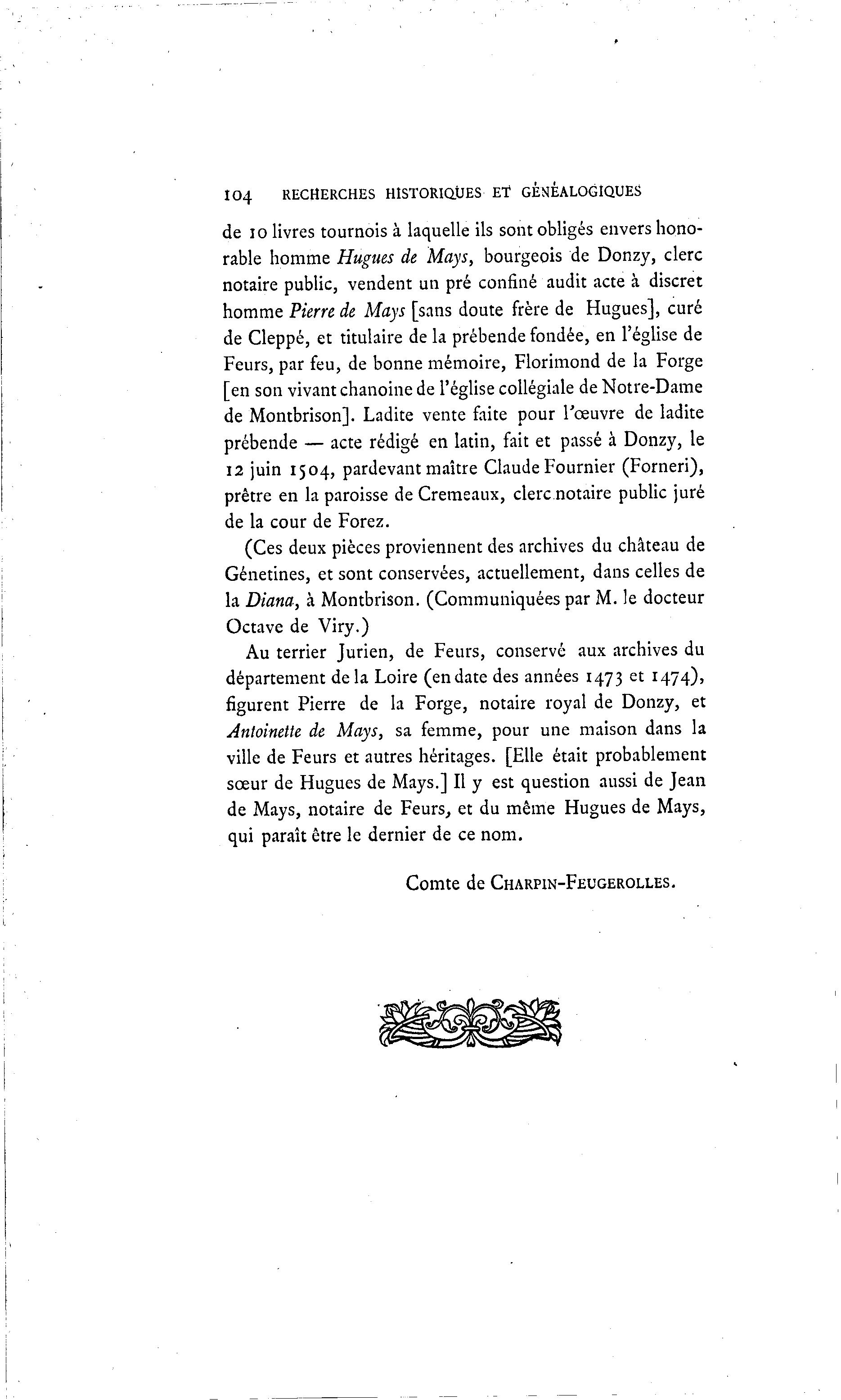 de Mays, notaire de Feurs, et du même Hugues de Mays,