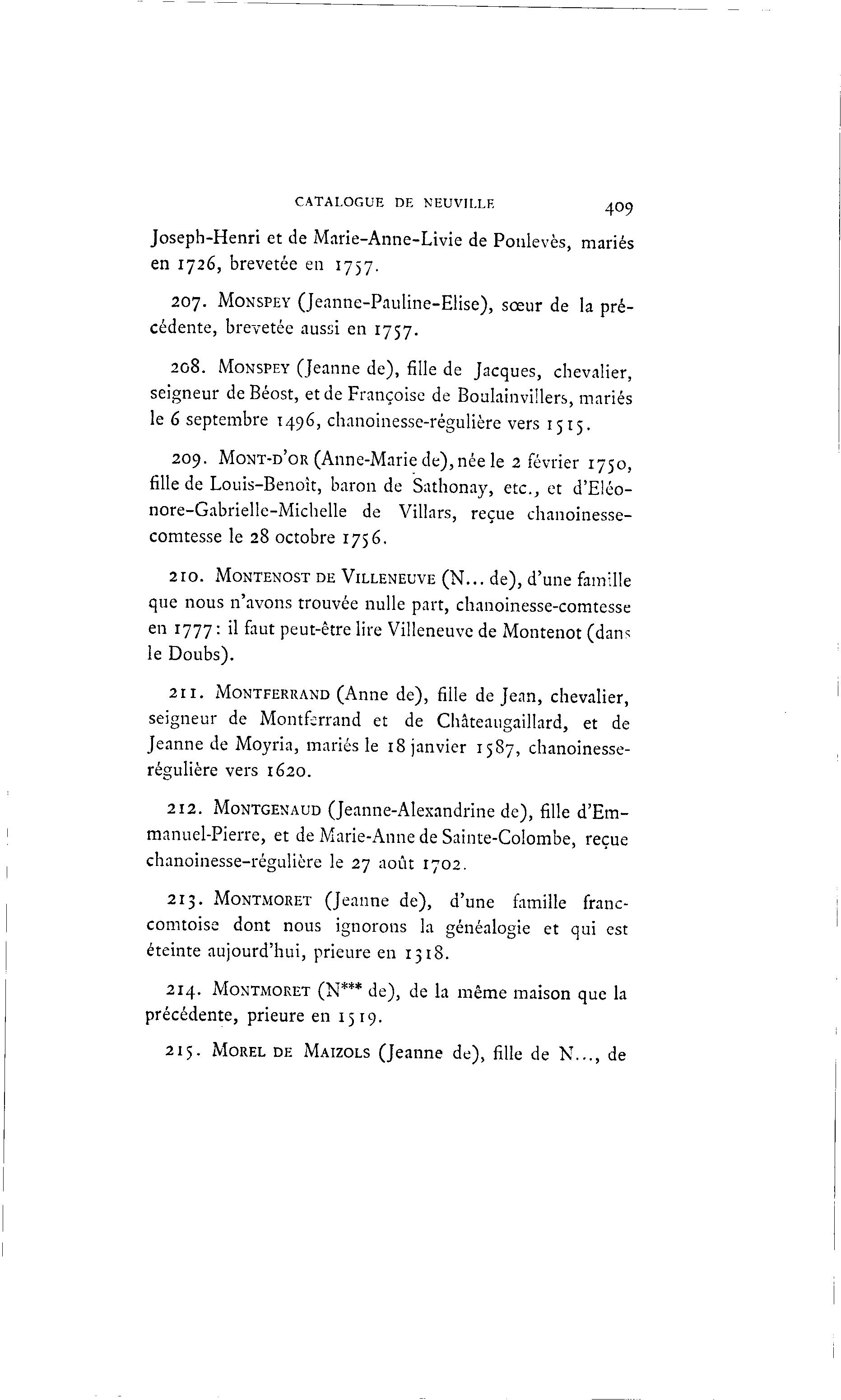 213. MONTMORET (Jeanne de), d'une famille franc-