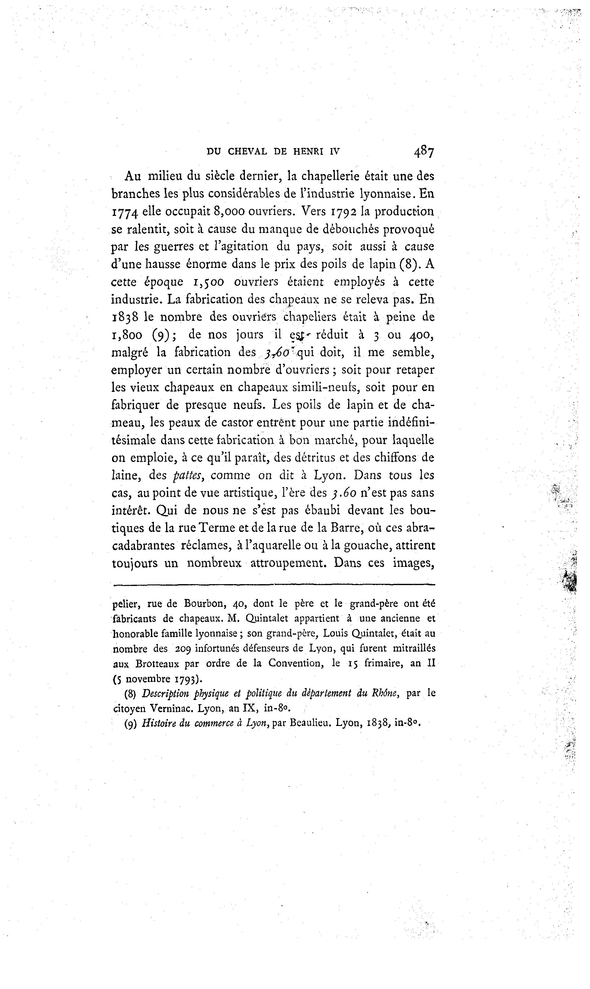 (9) Histoire du commerce à Lyon, par Beaulieu. Lyon, 1838, in-8°.