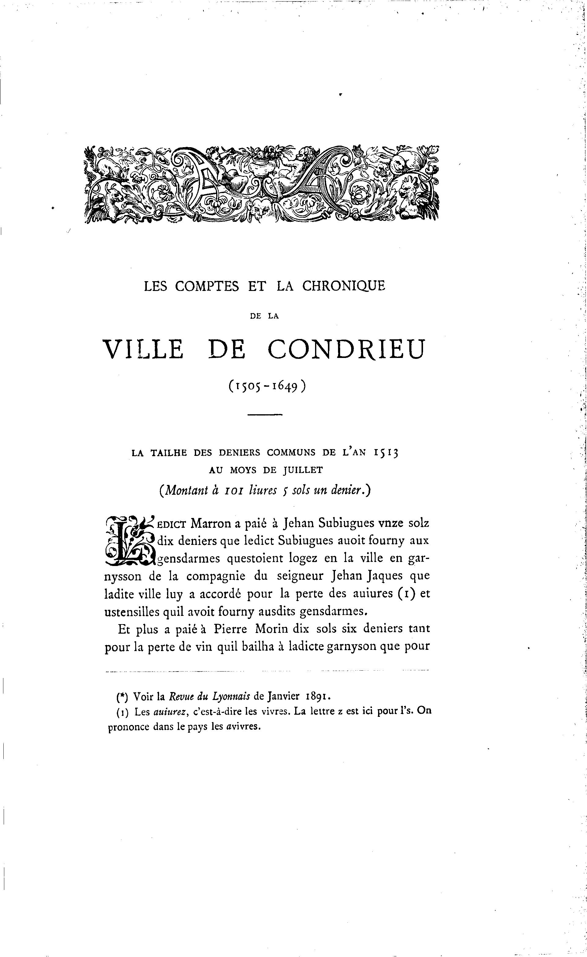 (1) Les auiurez, c'est-Ã -dire les vivres. La lettre z est ici pourl's. On