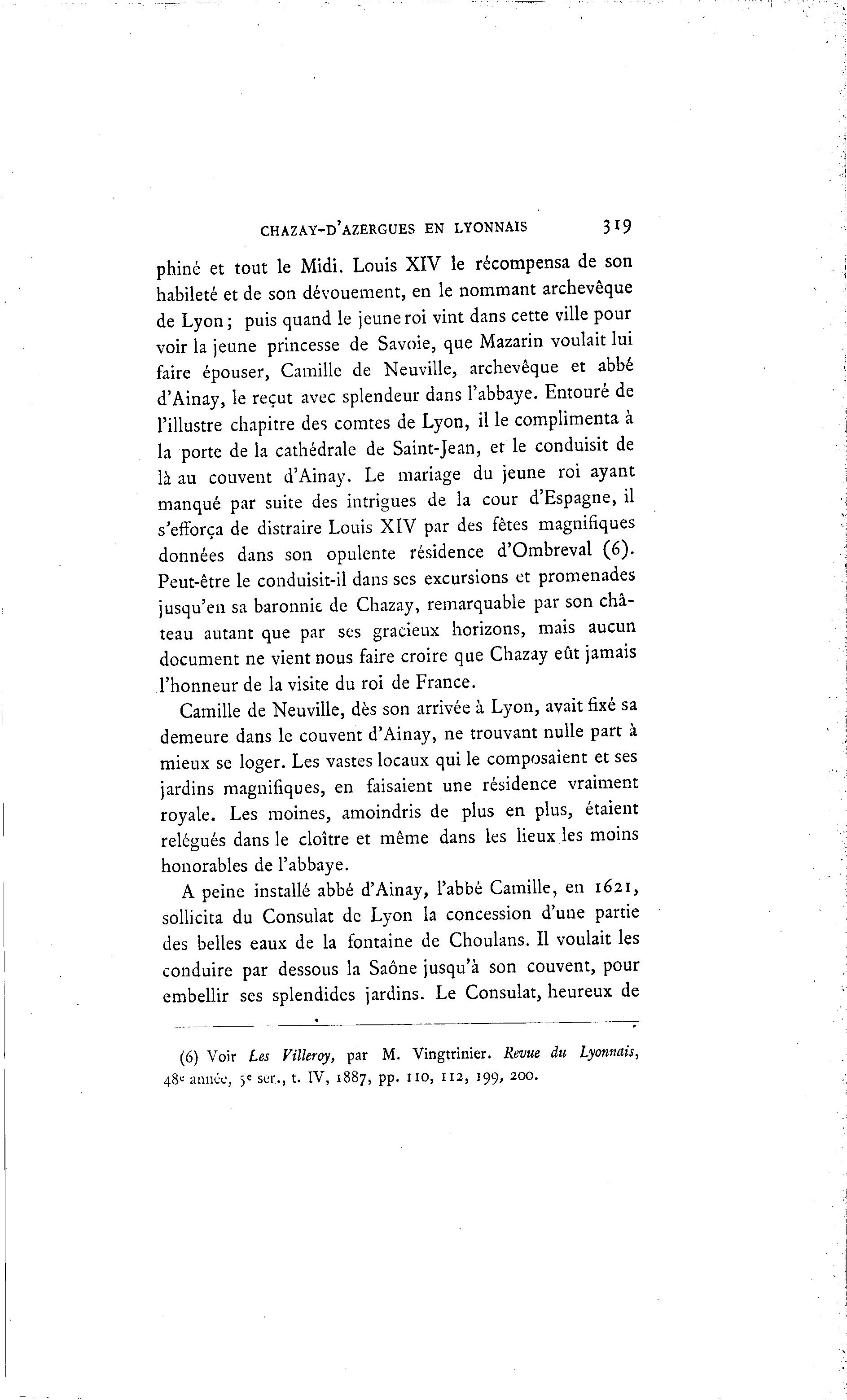 (6) Voir Les Villeroy, par M. Vingtrinier. Revue du Lyonnais,