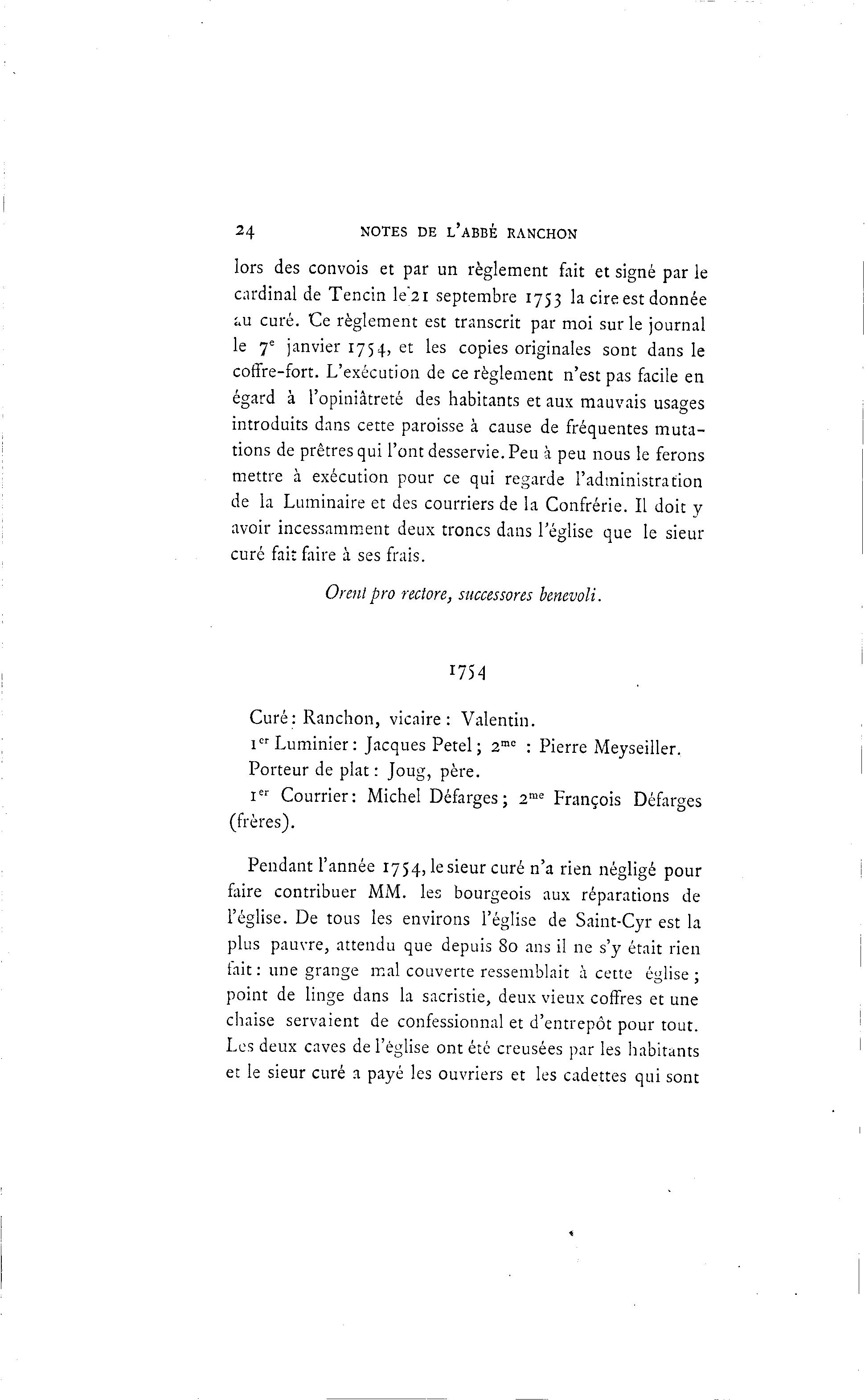 Pendant l'année 1754, le sieur curé n'a rien négligé pour