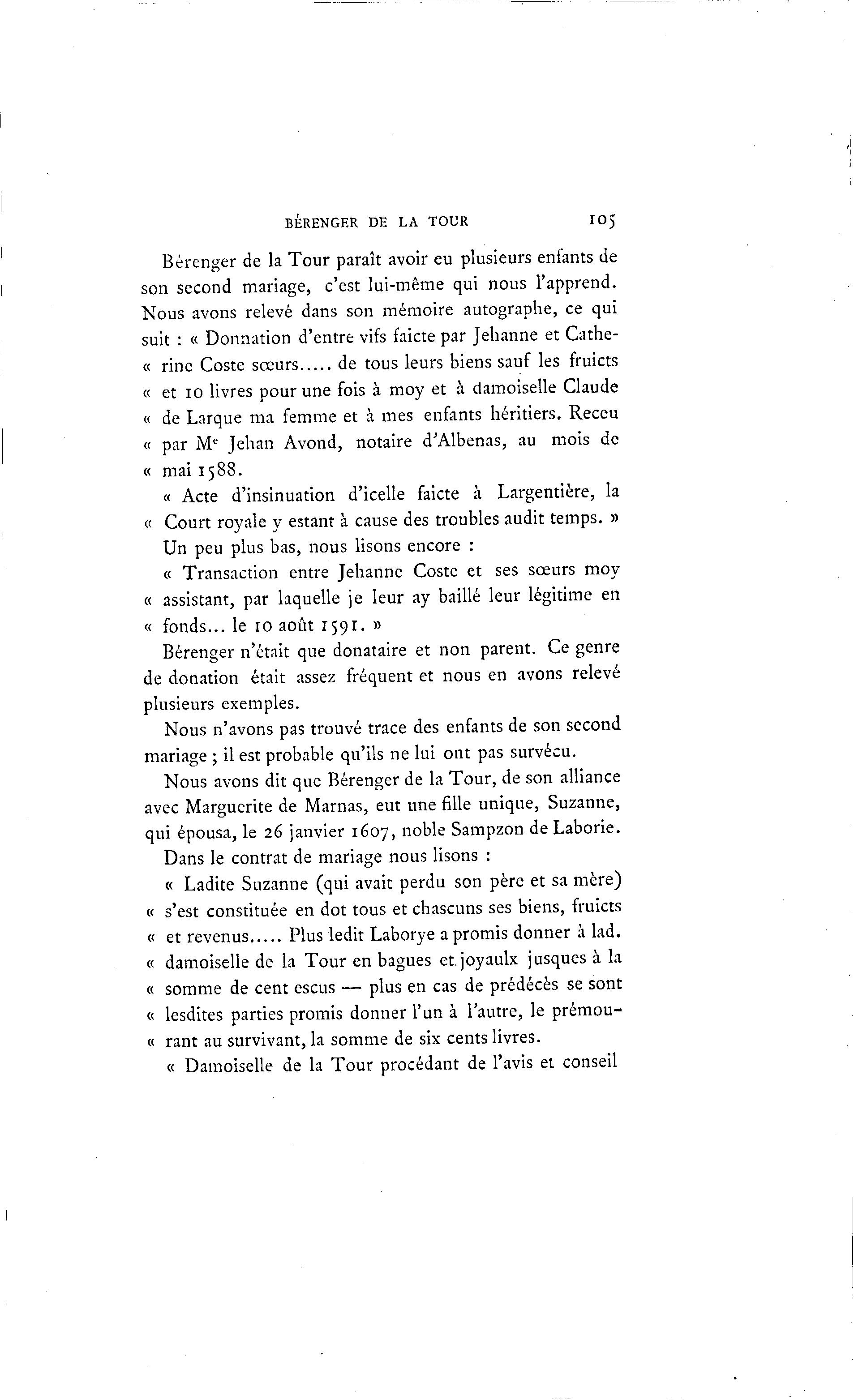 avec Marguerite de Marnas, eut une fille unique, Suzanne,
