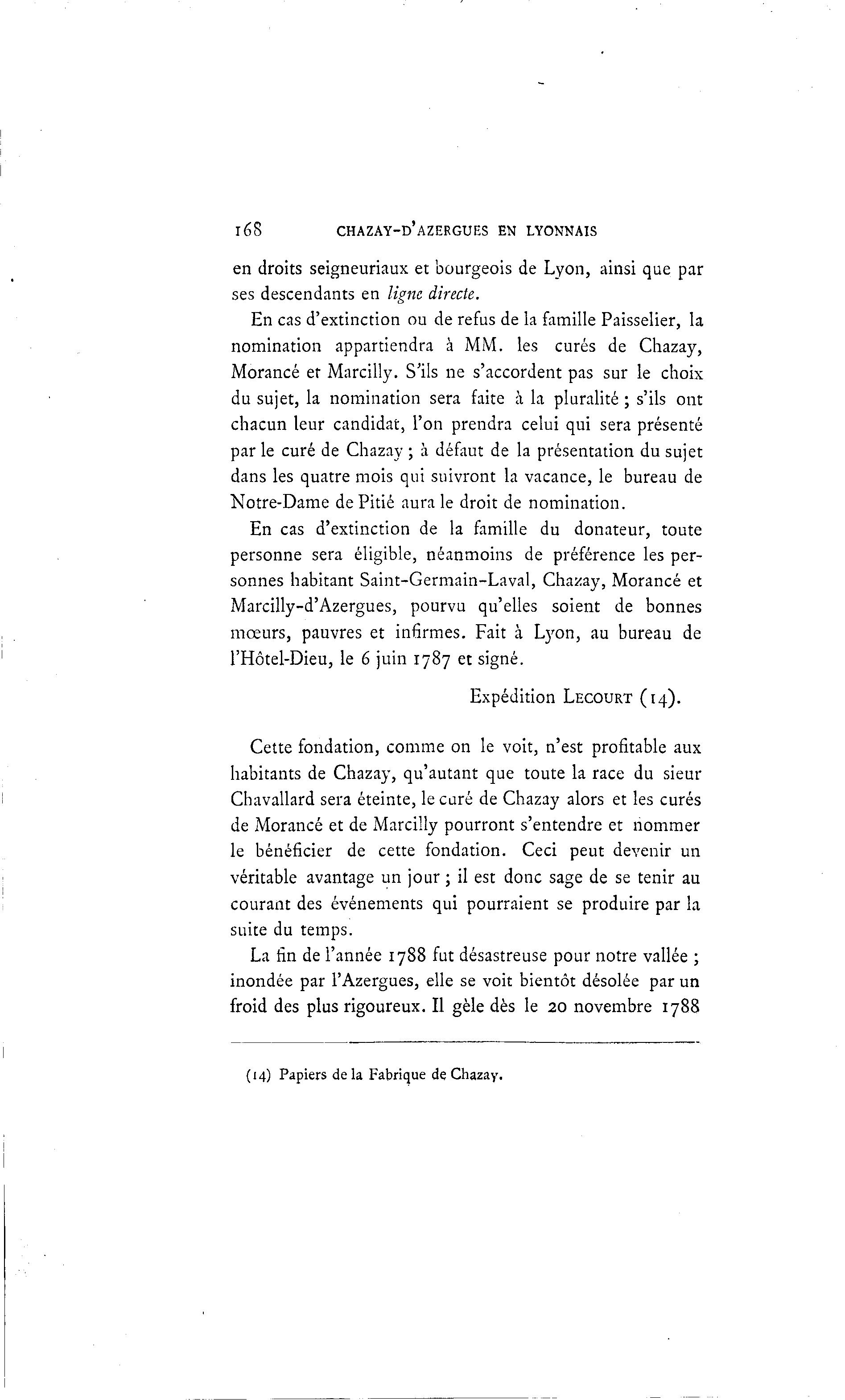 (14) Papiers delà Fabrique de Chazay.