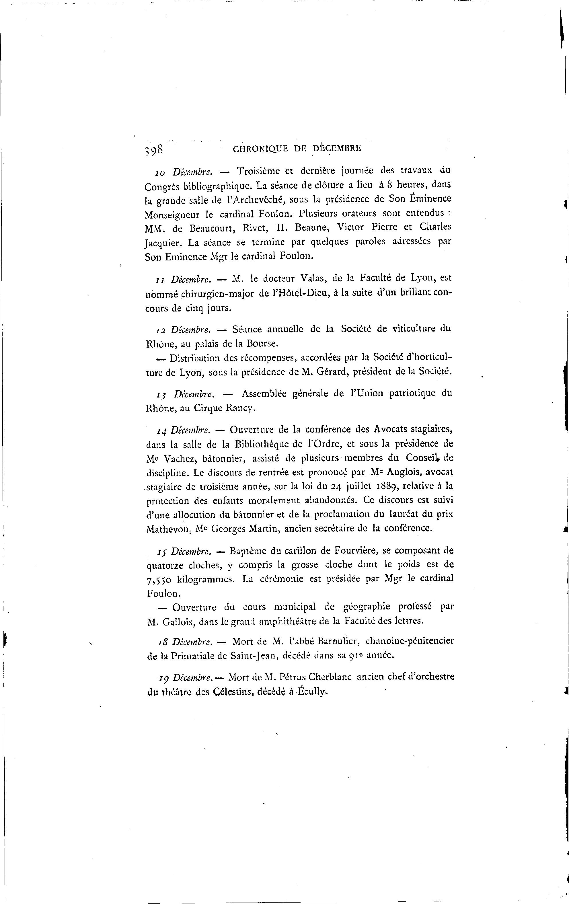 i ; Décembre. — M. le docteur Valas, de la Faculté de Lyon, est